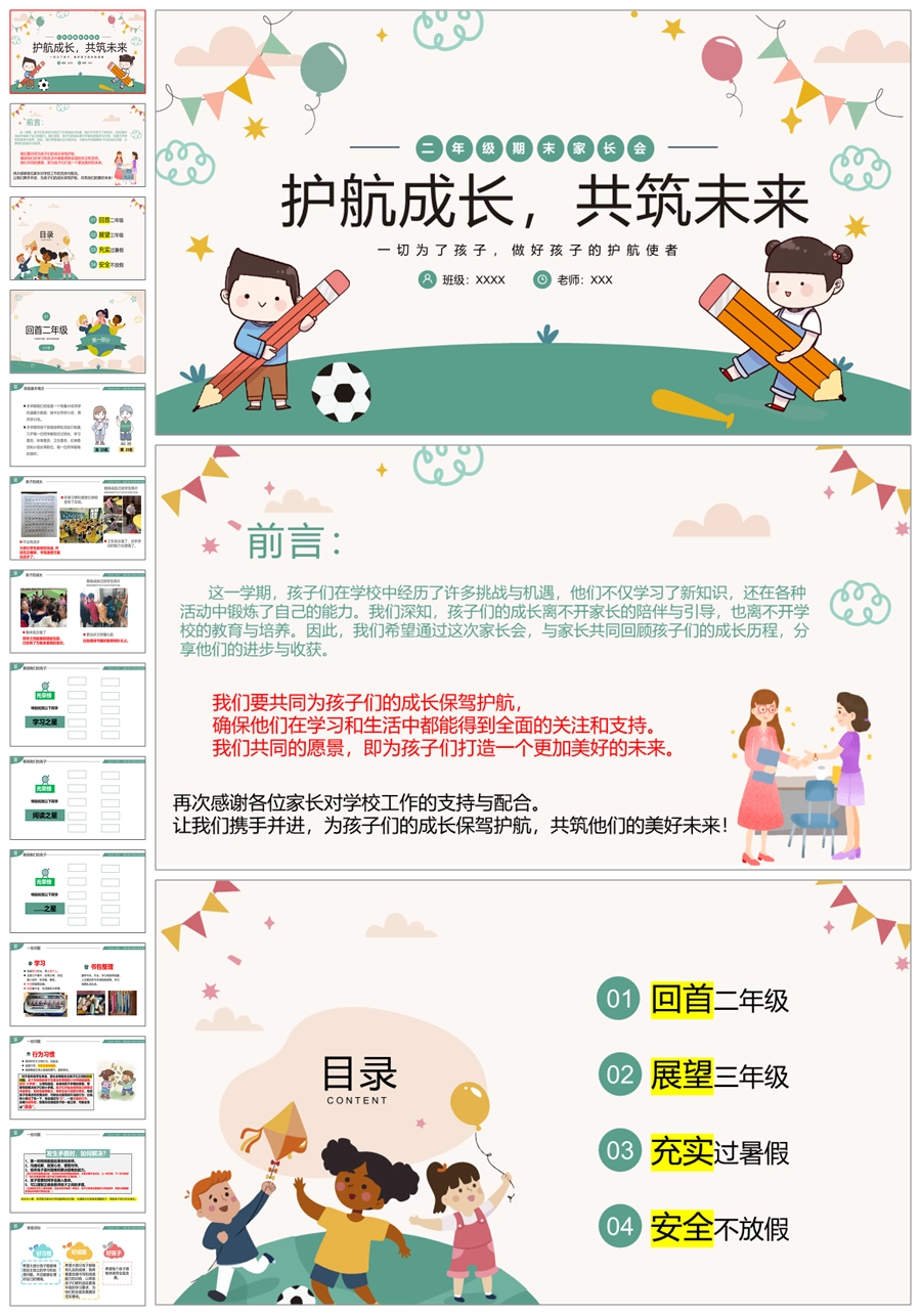首页 二年级家长会 【5289】【二下】【语文】【护航成长,共筑未来】二年级下学期期末家长会PPT课件+发言稿