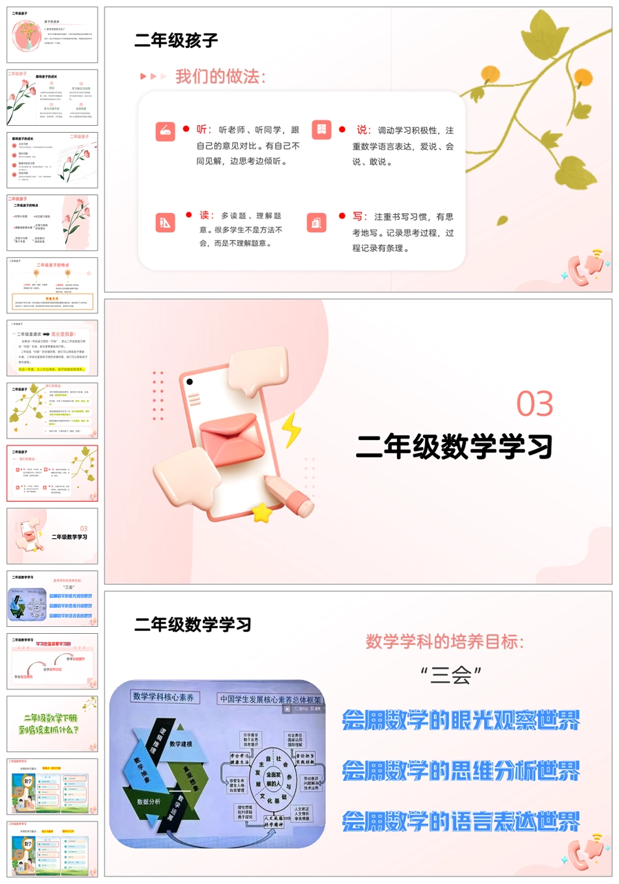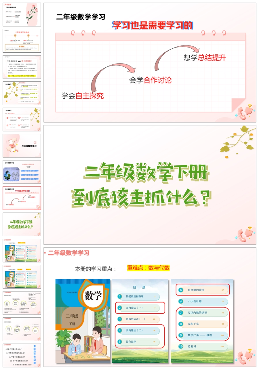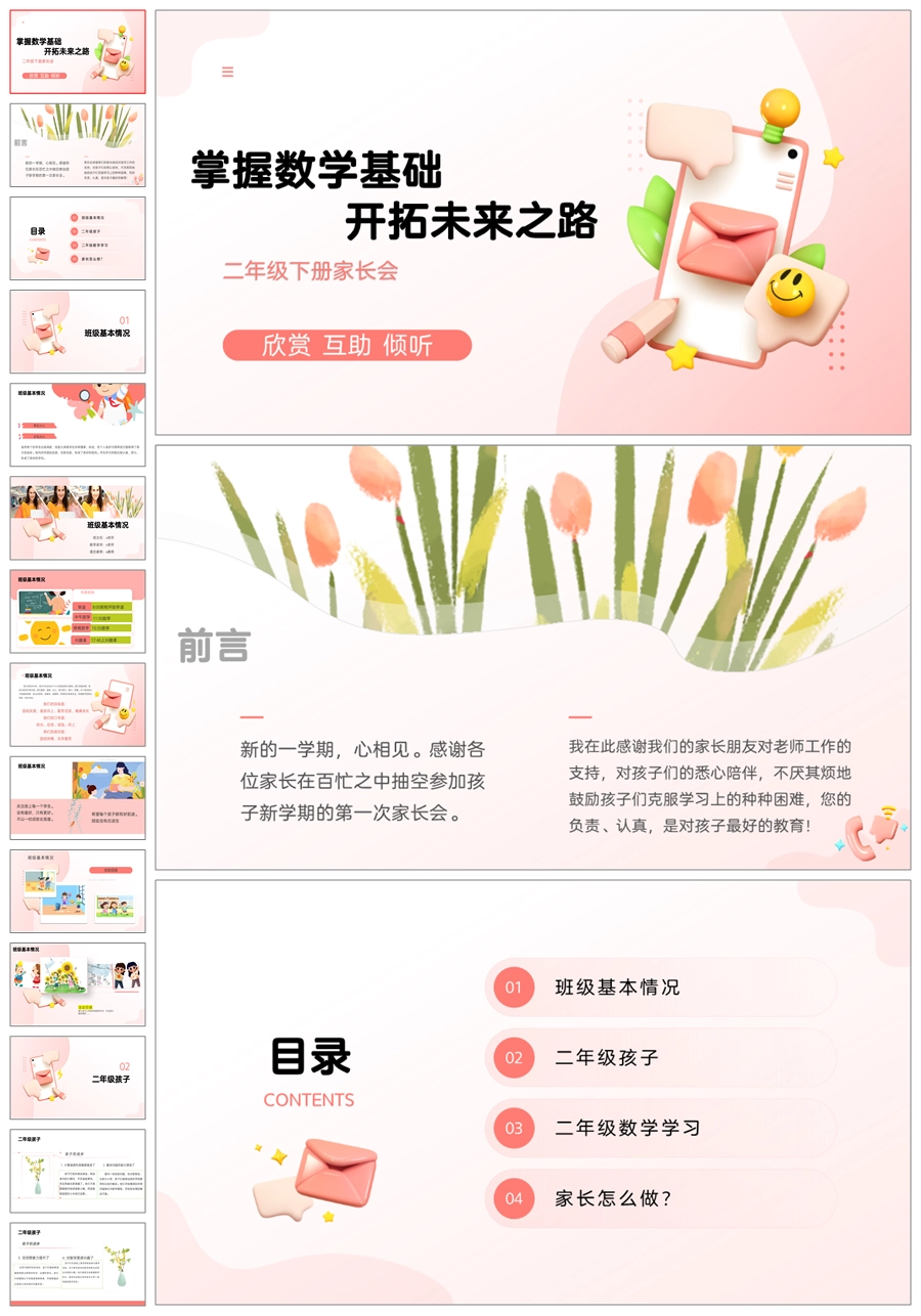 【5293】【二下】数学【掌握数学基础 开拓未来之路】二年级下学期家长会PPT课件+发言稿