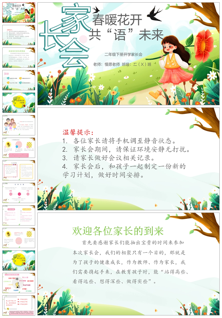 【5295】【二下】语文【春暖花开 共“语”未来】二年级下学期开学家长会PPT课件+发言稿