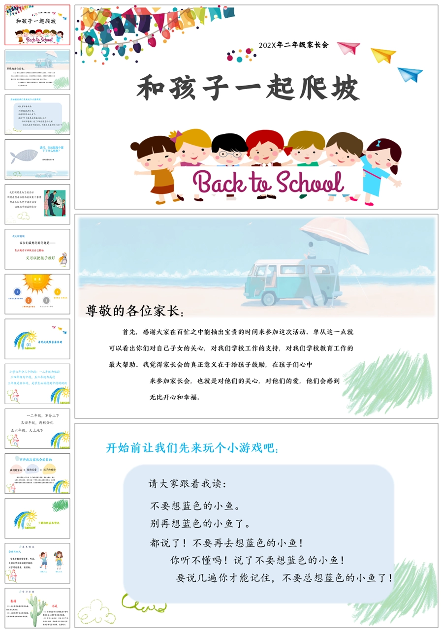 【5299】【和孩子一起爬坡】二年级家长会PPT课件+发言稿