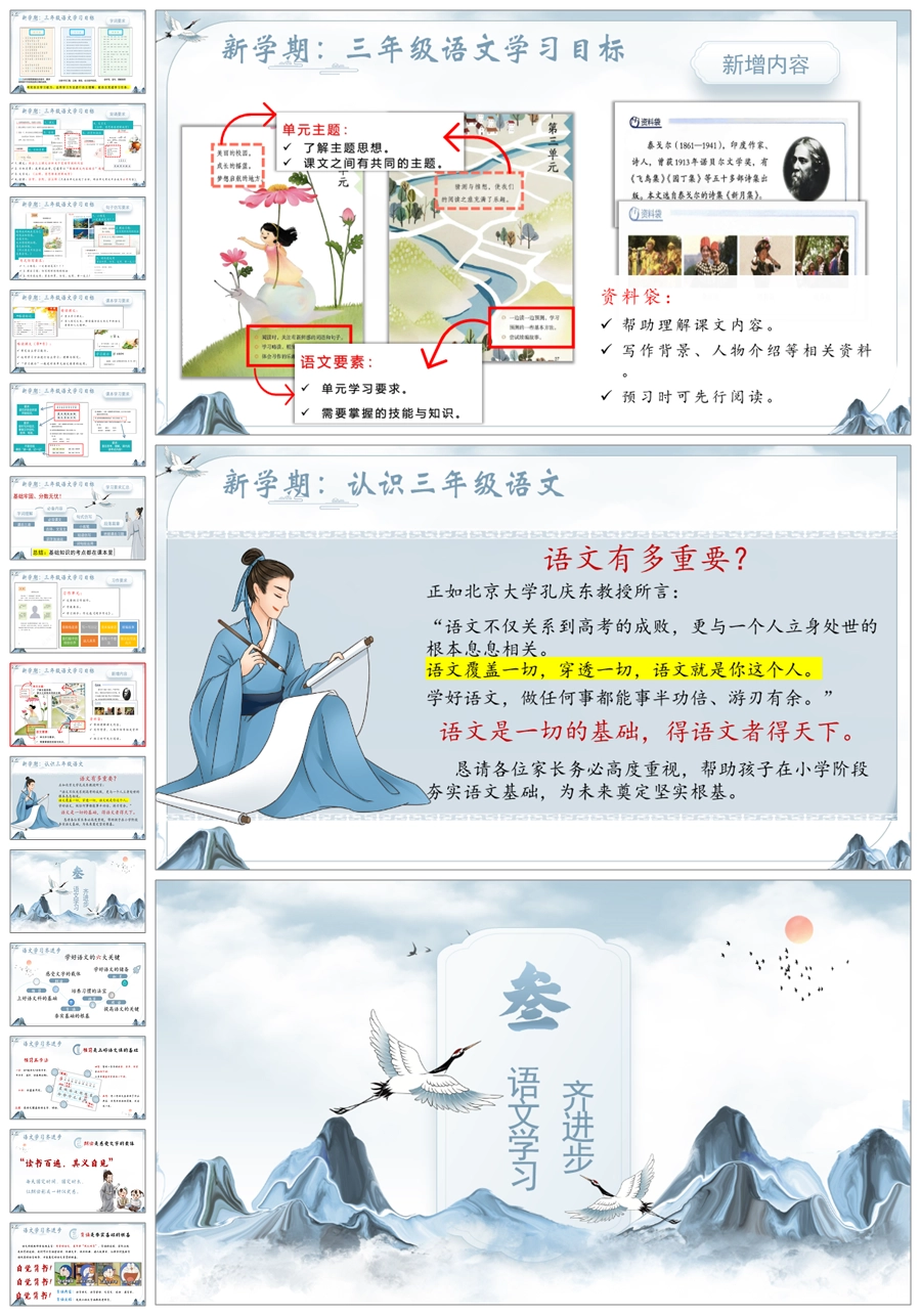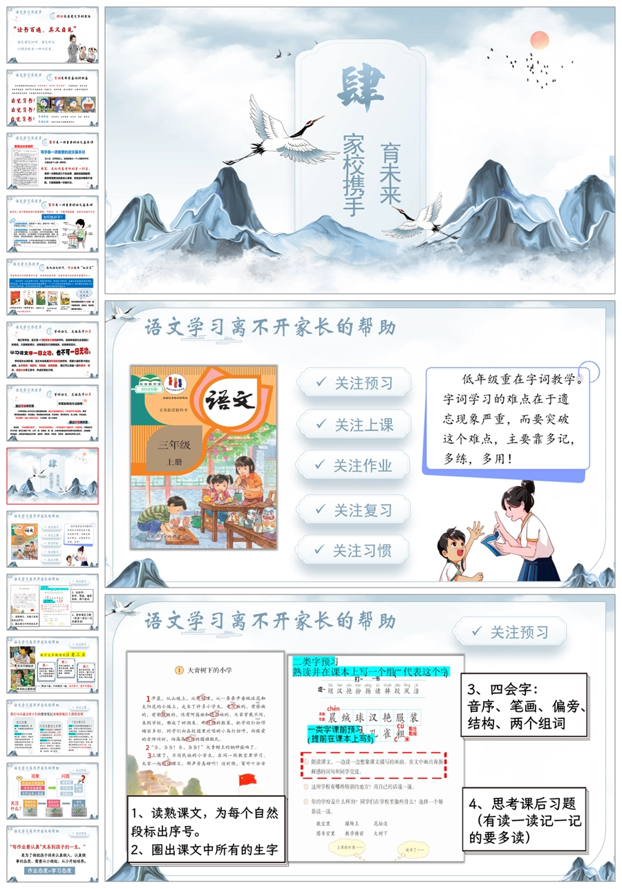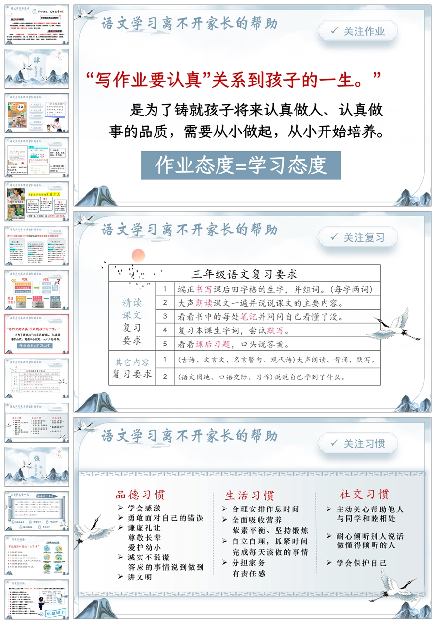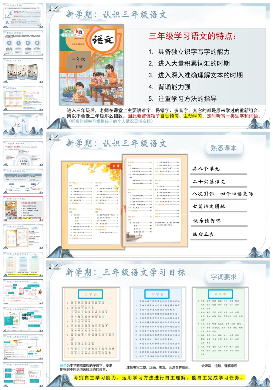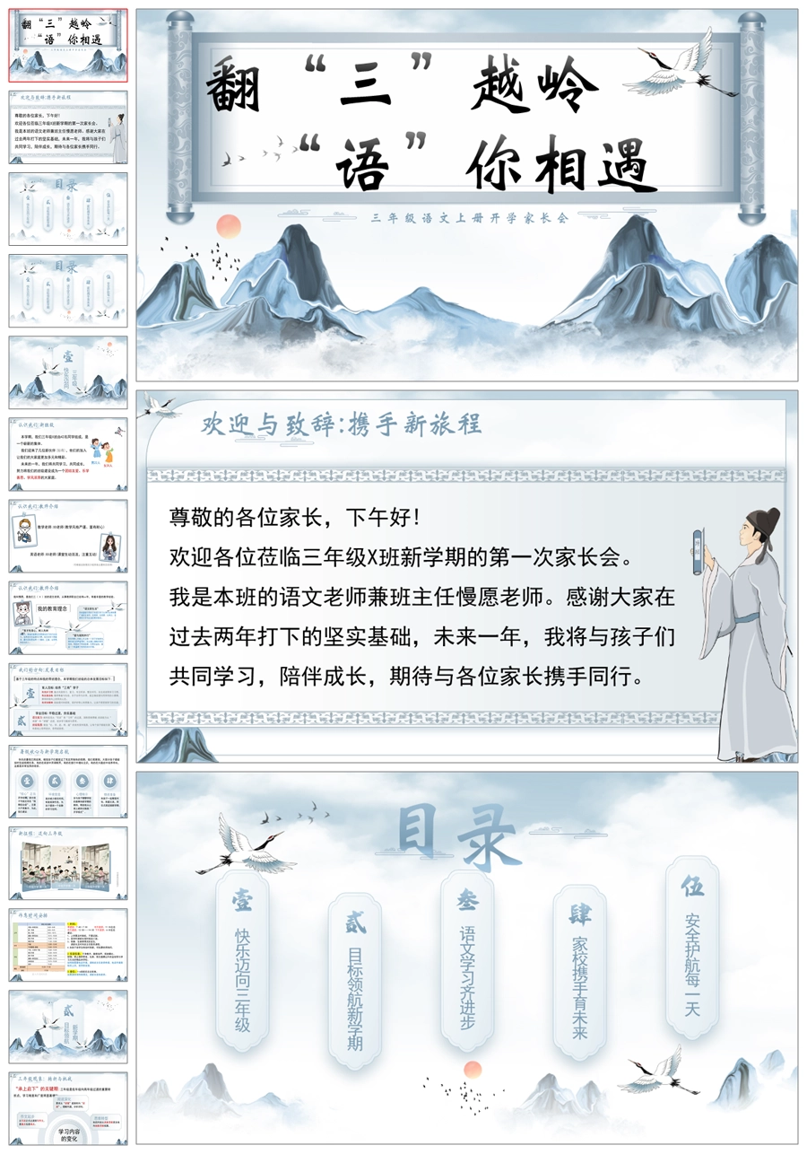 首页 三年级家长会 【5311】【三上】【语文】【翻“三”越岭 “语”你相遇】三年级上学期开学家长会PPT课件+发言稿