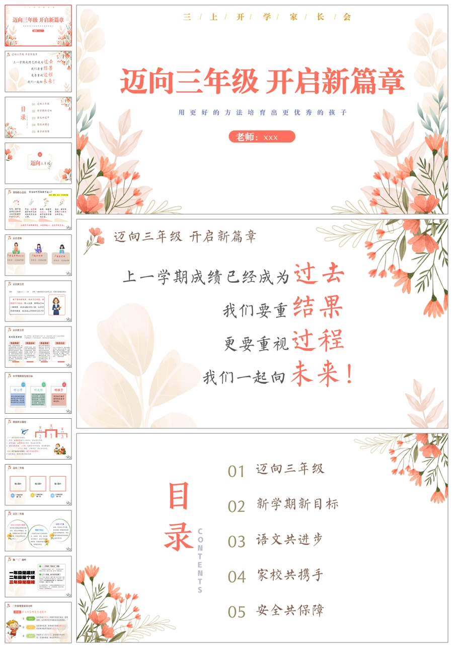 首页 三年级家长会 【5314】【三上】【语文】【迈向三年级 开启新篇章】三年级上学期开学家长会PPT课件+发言稿