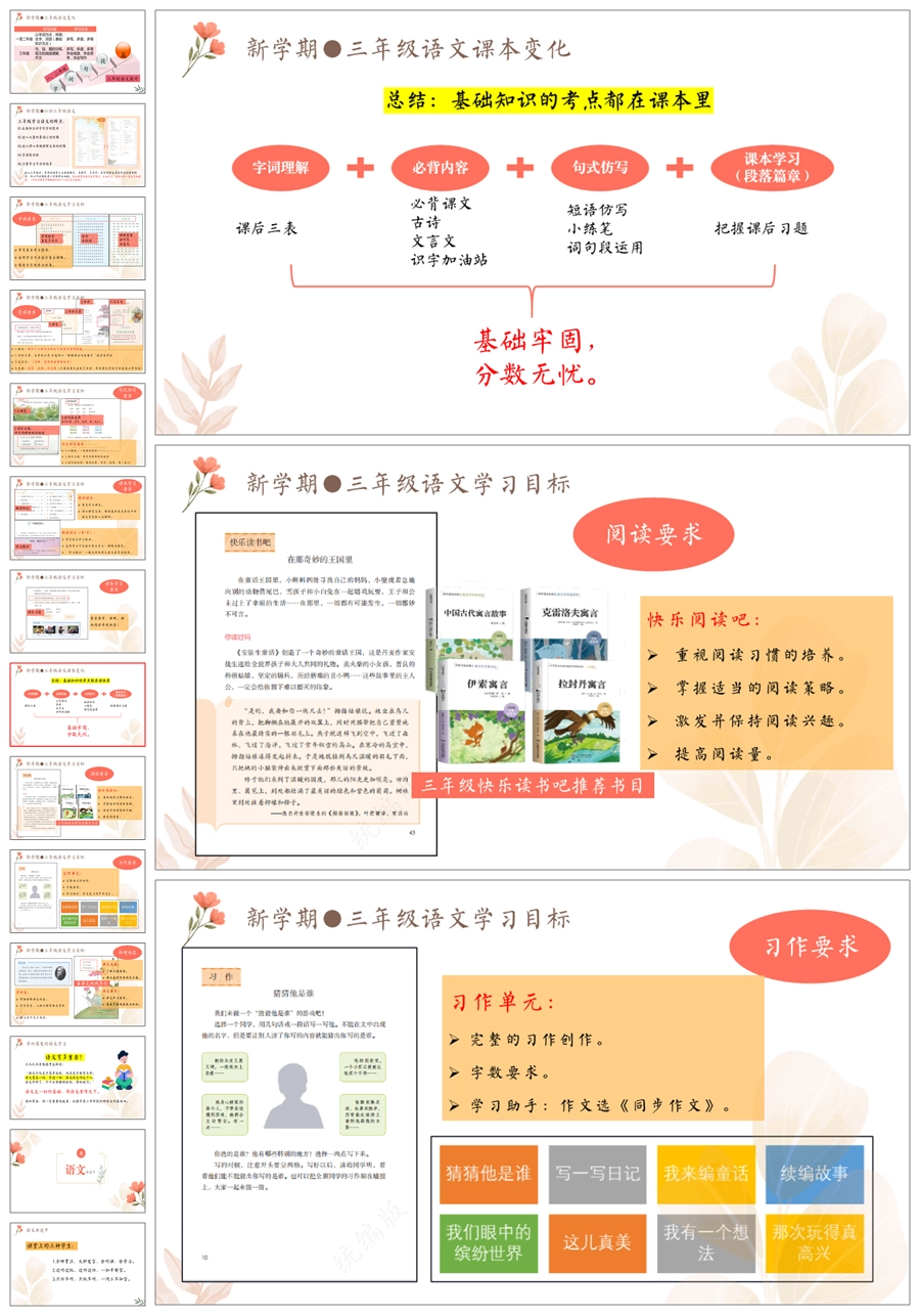 【5314】【三上】【语文】【迈向三年级 开启新篇章】三年级上学期开学家长会PPT课件+发言稿