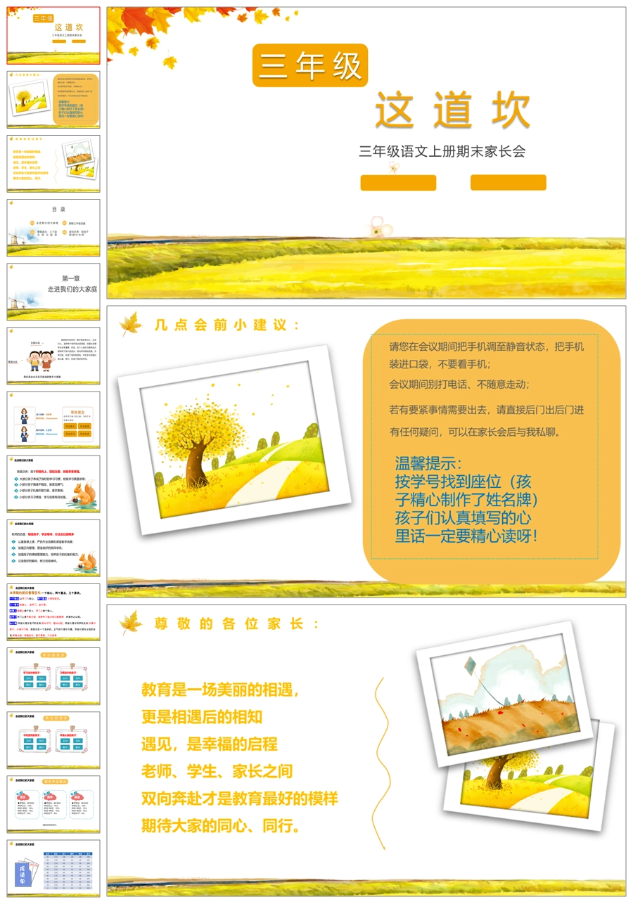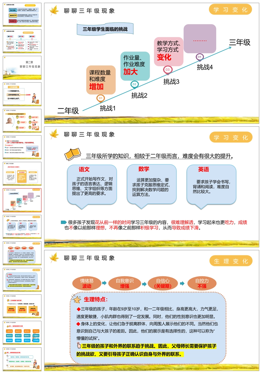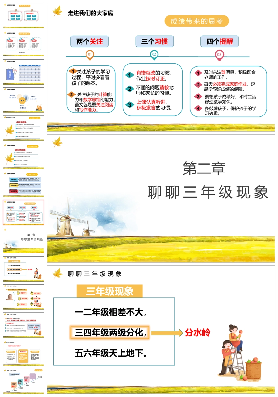 【5316】【三上】【语文】【三年级这道坎】三年级上学期期末家长会PPT课件+发言稿