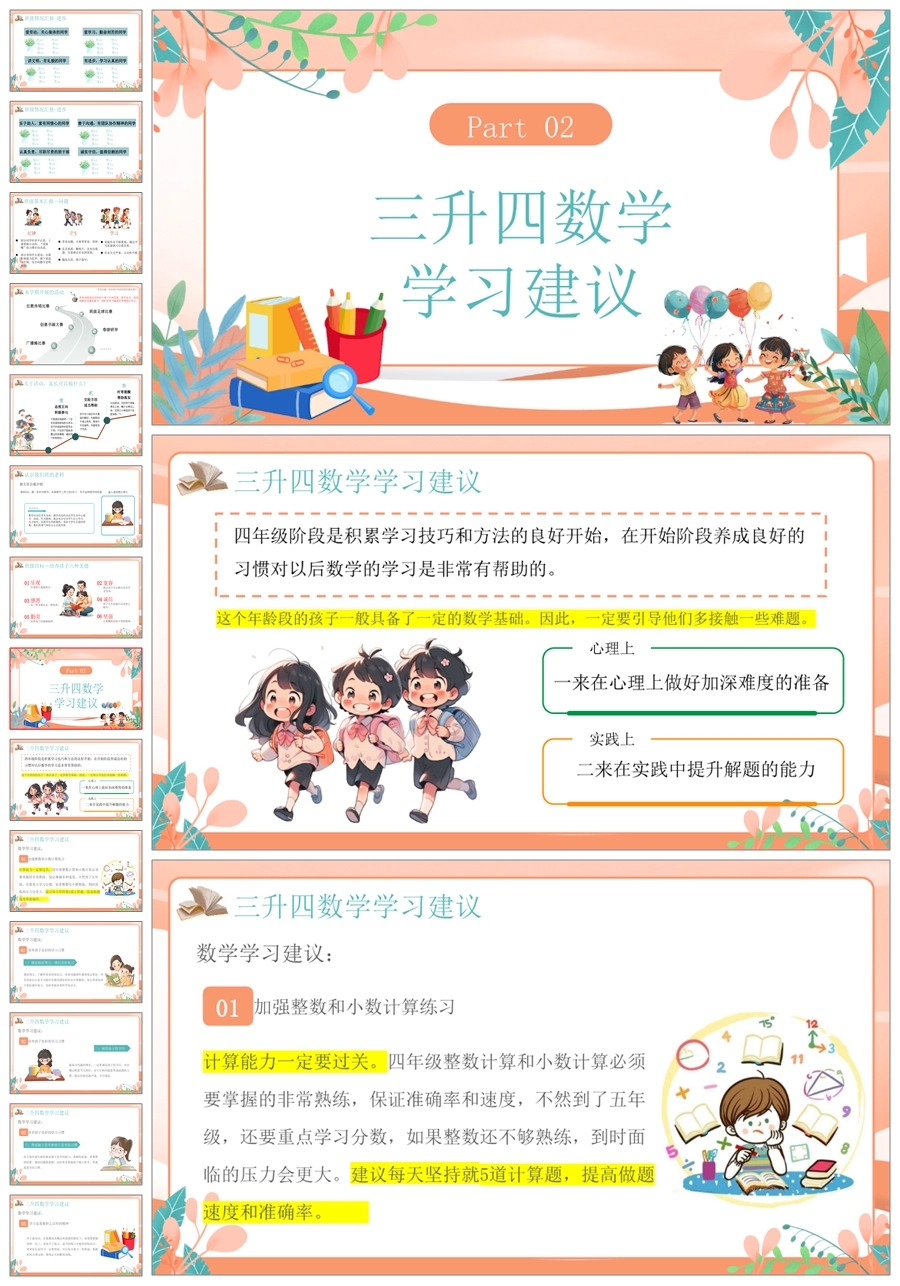 【5323】【三下】【数学】【翻“三”越岭 只为等“花”开】三年级下学期期末家长会PPT课件+发言稿