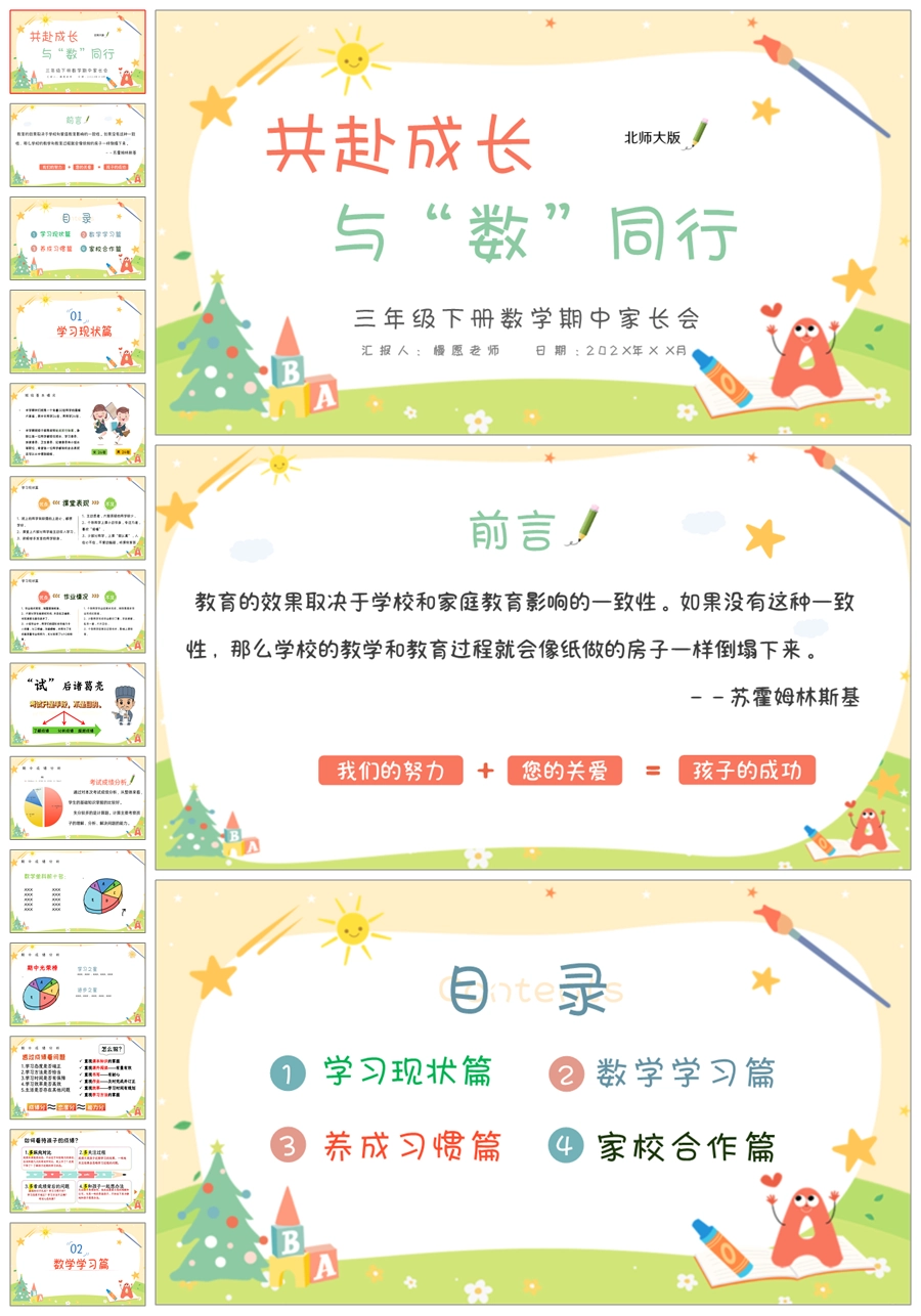 【5324】【三下】【数学】【共赴成长 与“数”同行】三年级下学期期中家长会北师大版PPT课件+发言稿