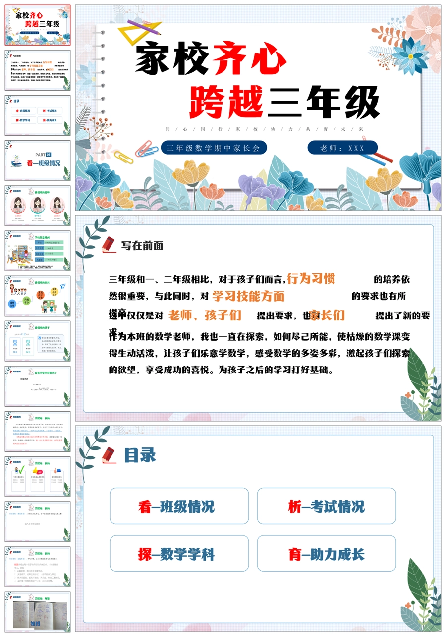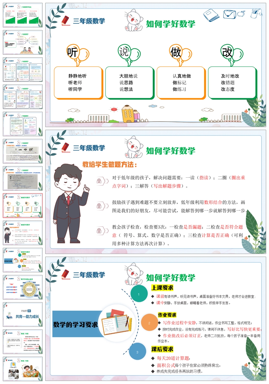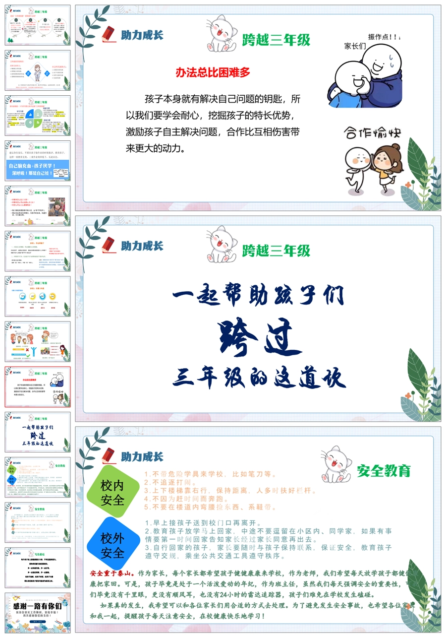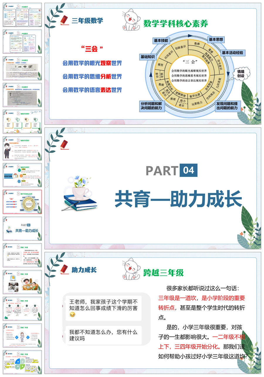 【5325】【三下】【数学】【家校齐心,跨越三年级】三年级下学期期中家长会PPT课件+发言稿