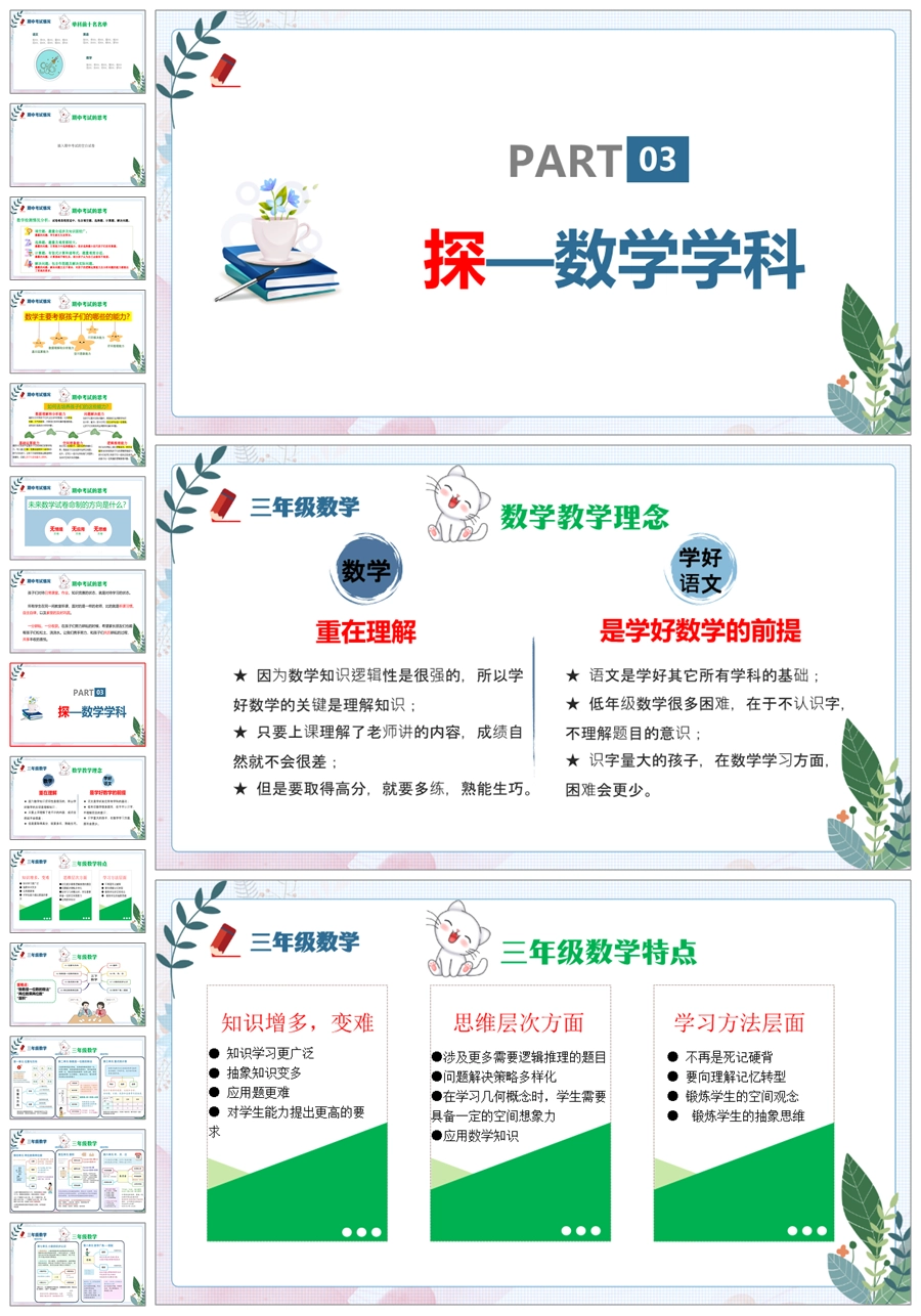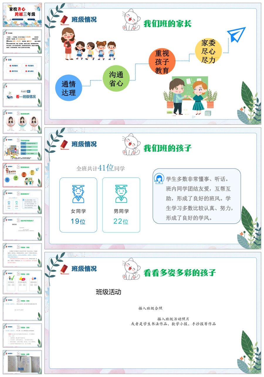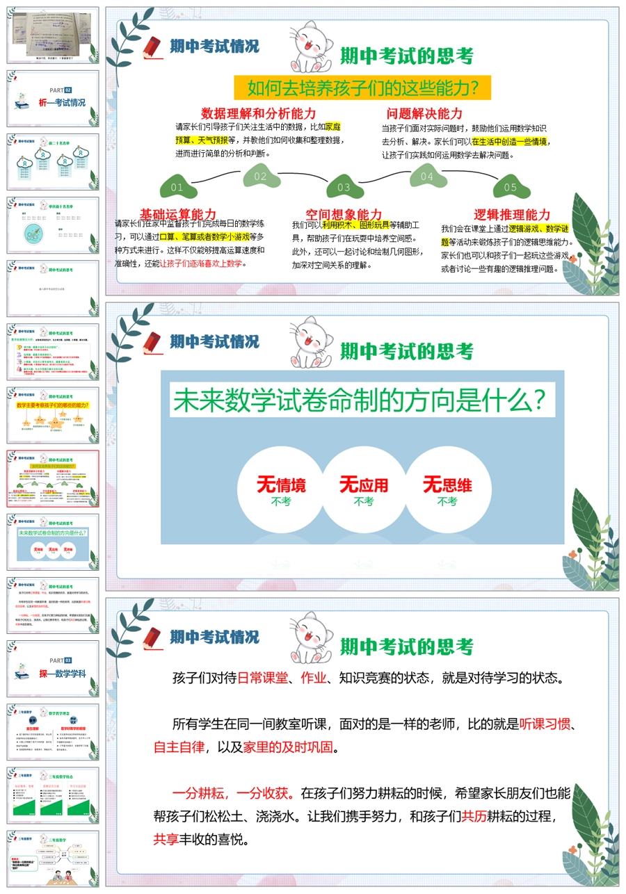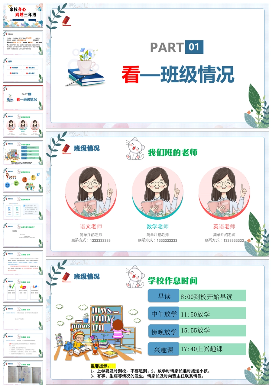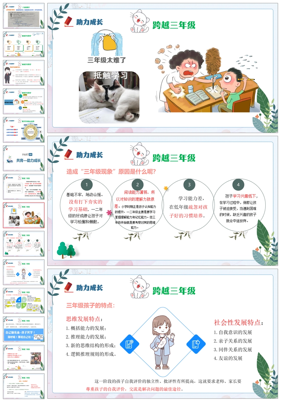 【5325】【三下】【数学】【家校齐心,跨越三年级】三年级下学期期中家长会PPT课件+发言稿