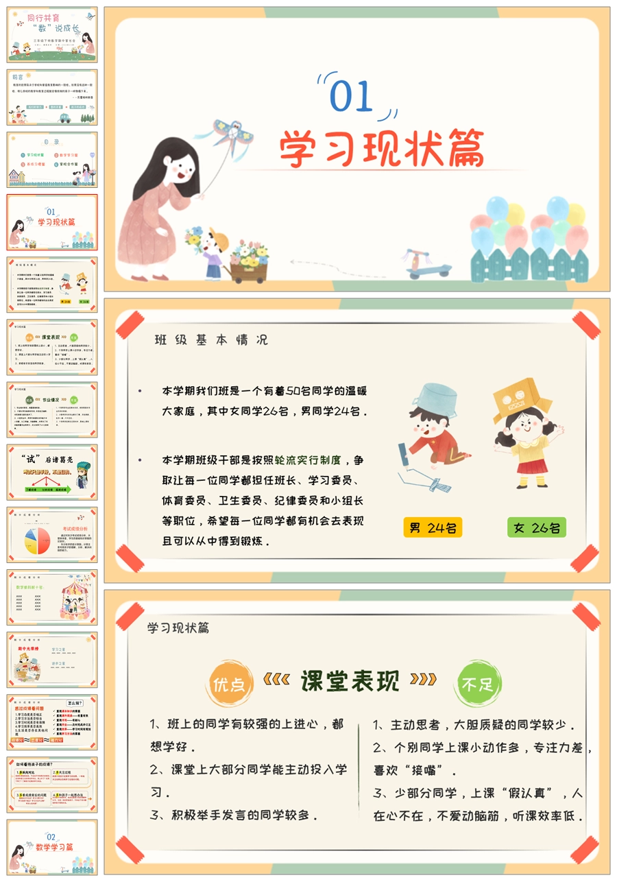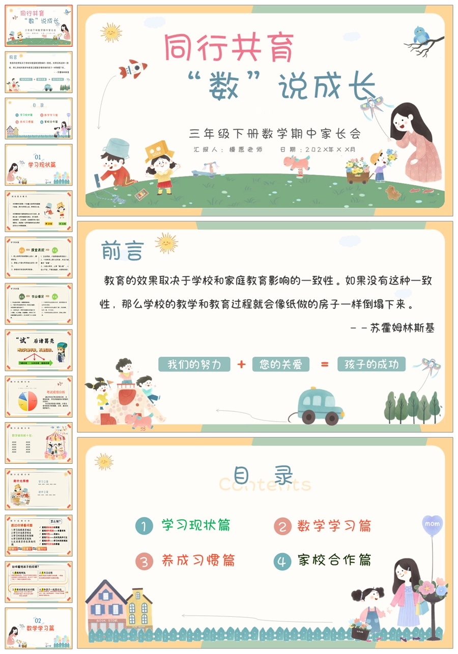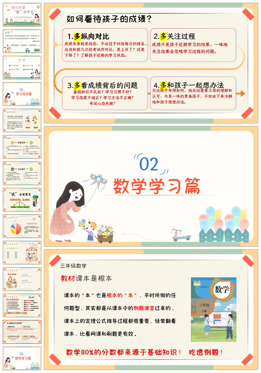 【5327】【三下】【数学】【同行共育 “数”说成长】三年级下学期期中家长会PPT课件+发言稿