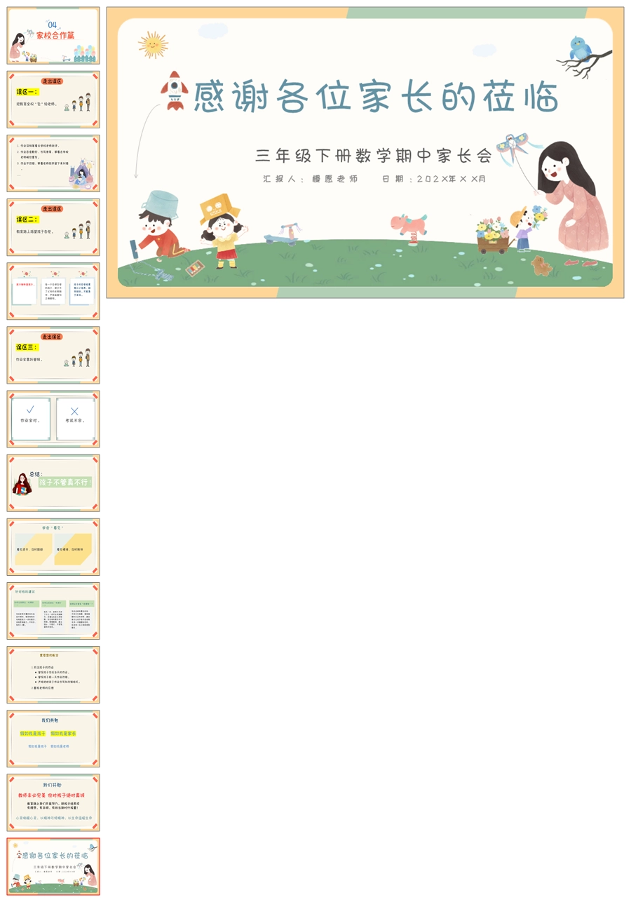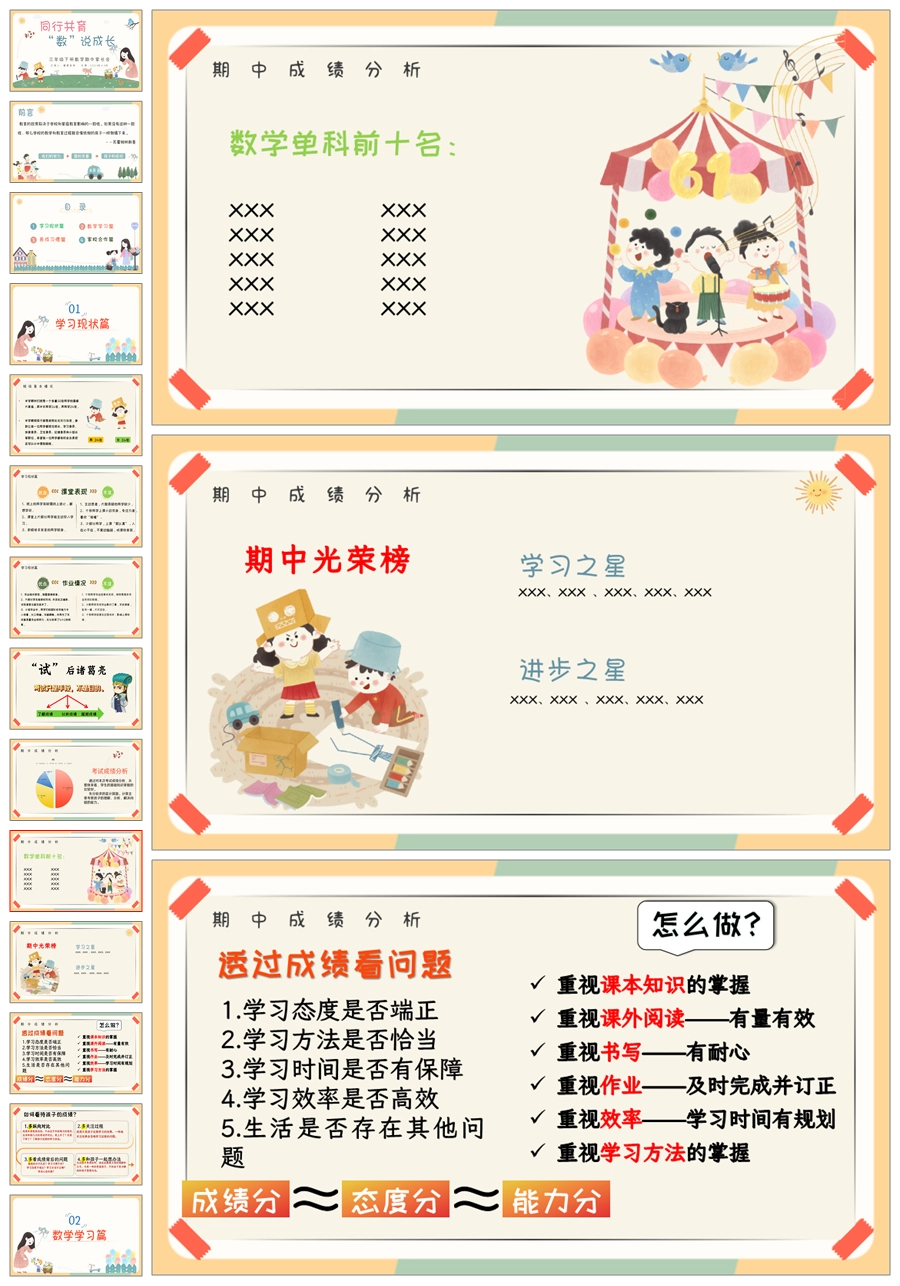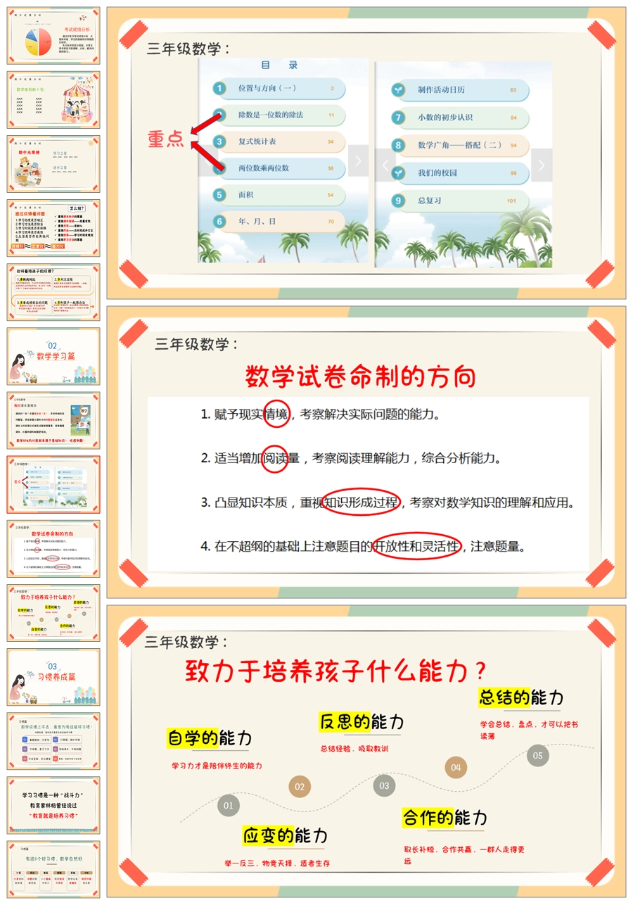【5327】【三下】【数学】【同行共育 “数”说成长】三年级下学期期中家长会PPT课件+发言稿
