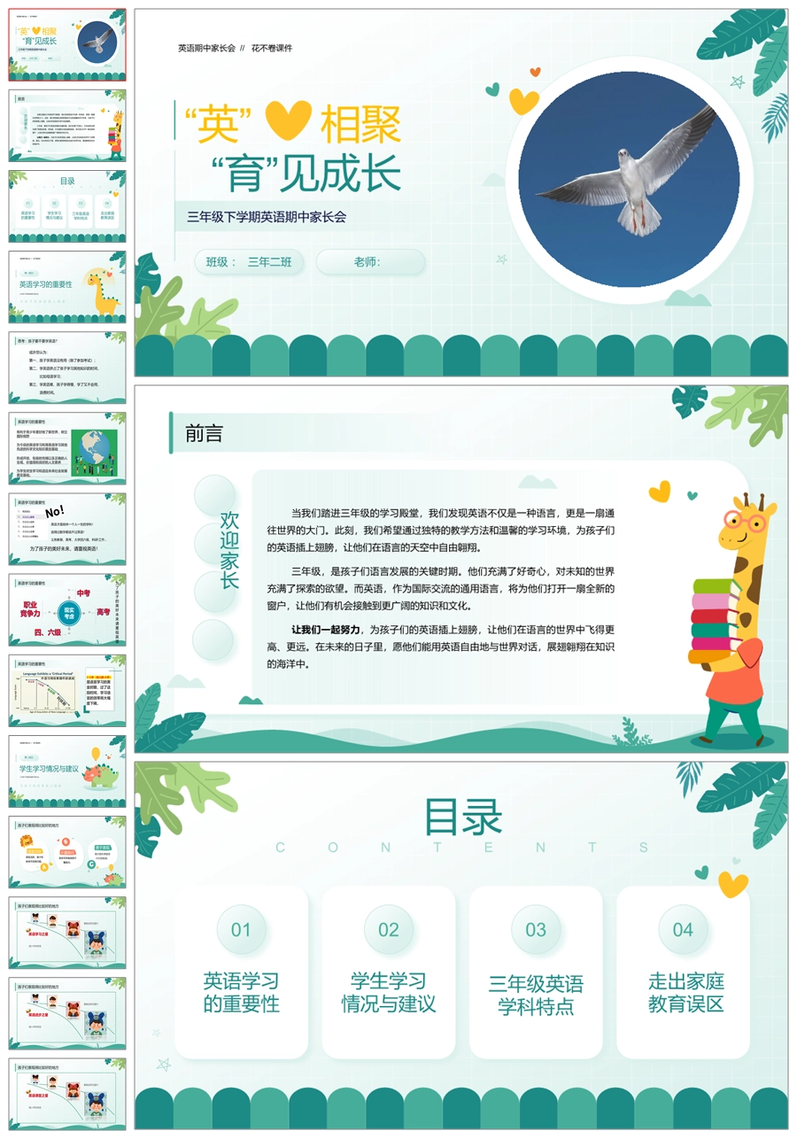 【5330】【三下】【英语】【因爱相聚 育见成长】三年级下学期期中家长会PPT课件+发言稿