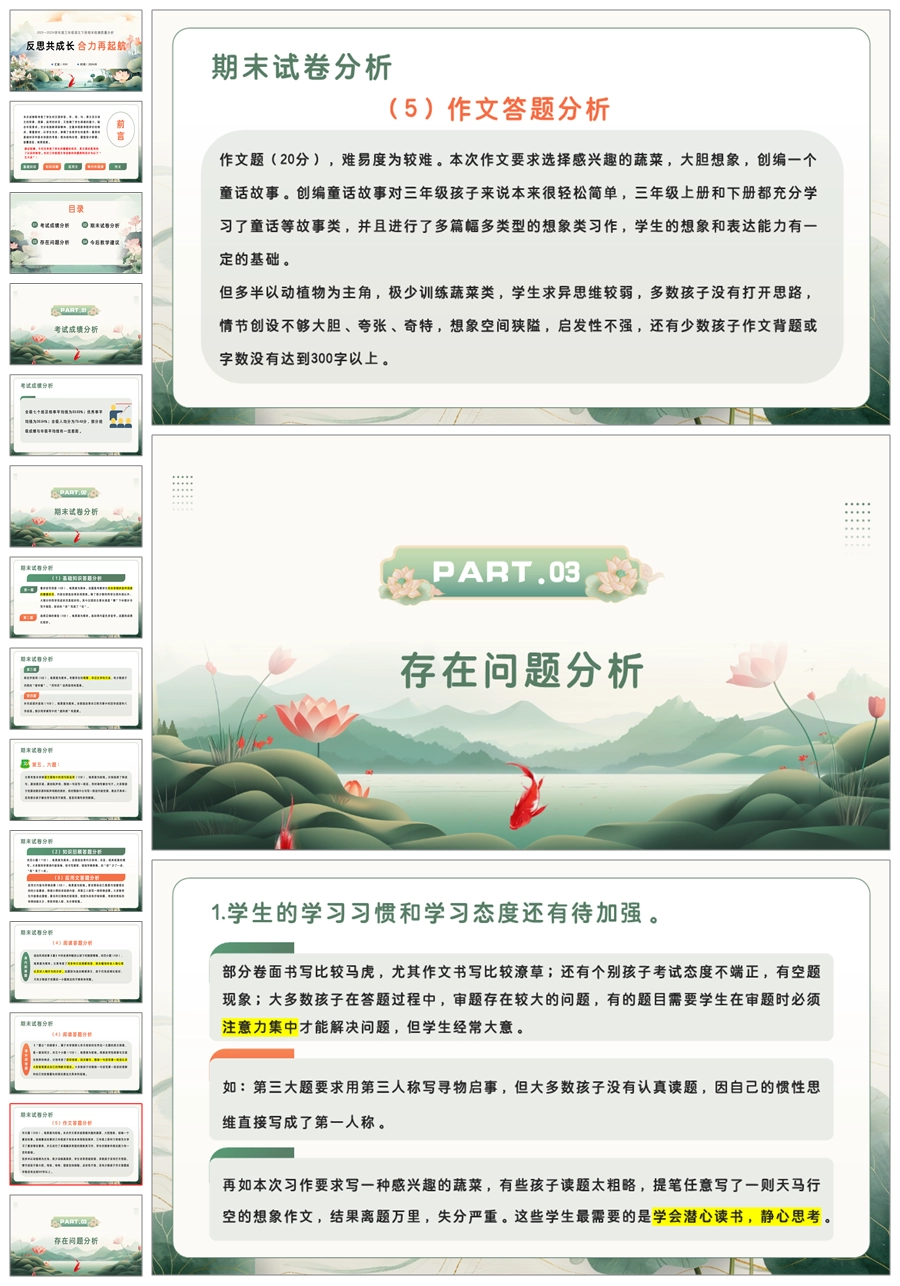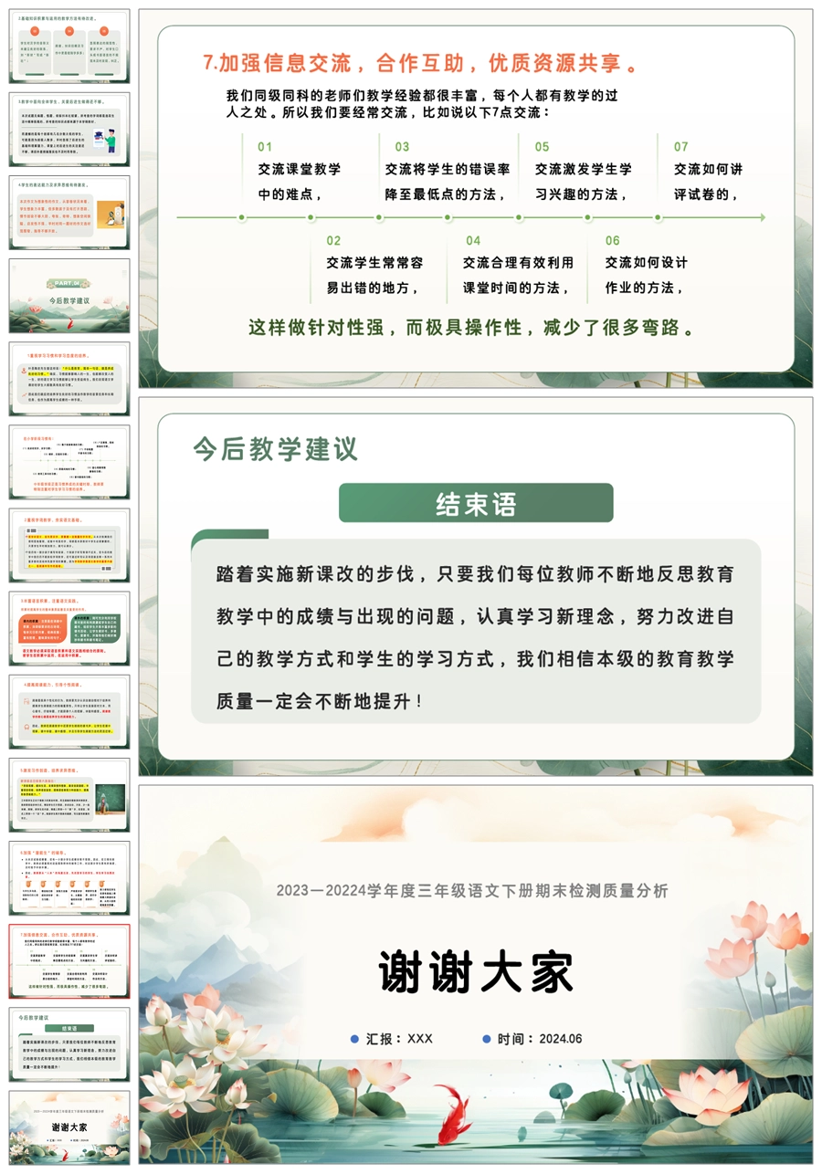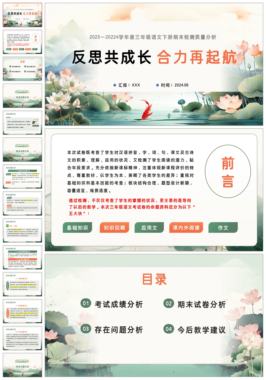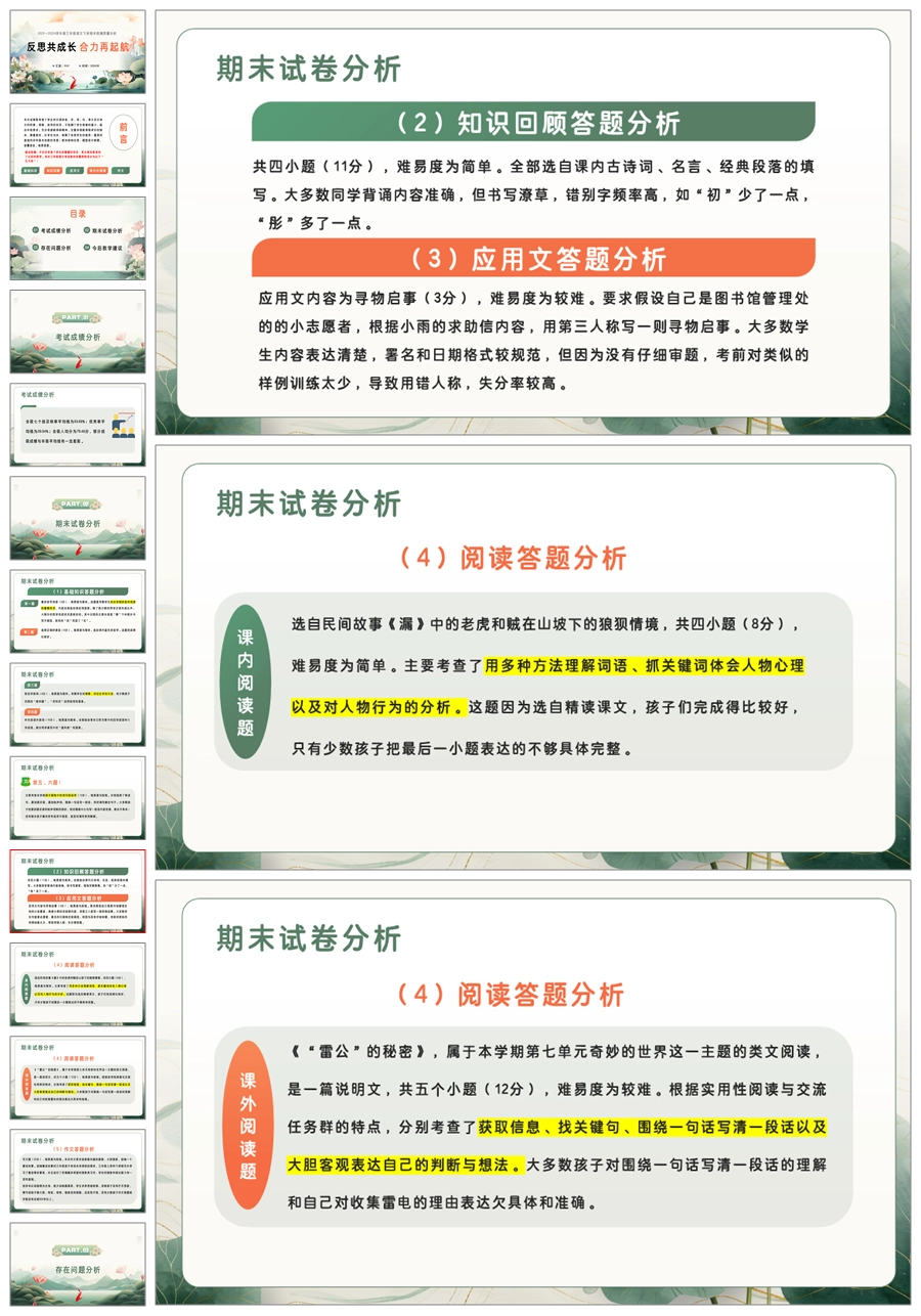 【5334】【三下】【语文】【反思共成长 合力再起航】三年级下学期期末质量分析PPT课件+发言稿