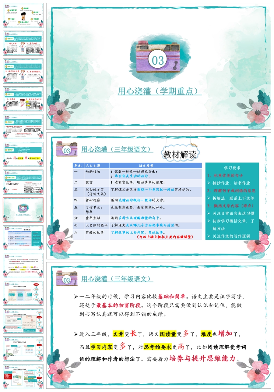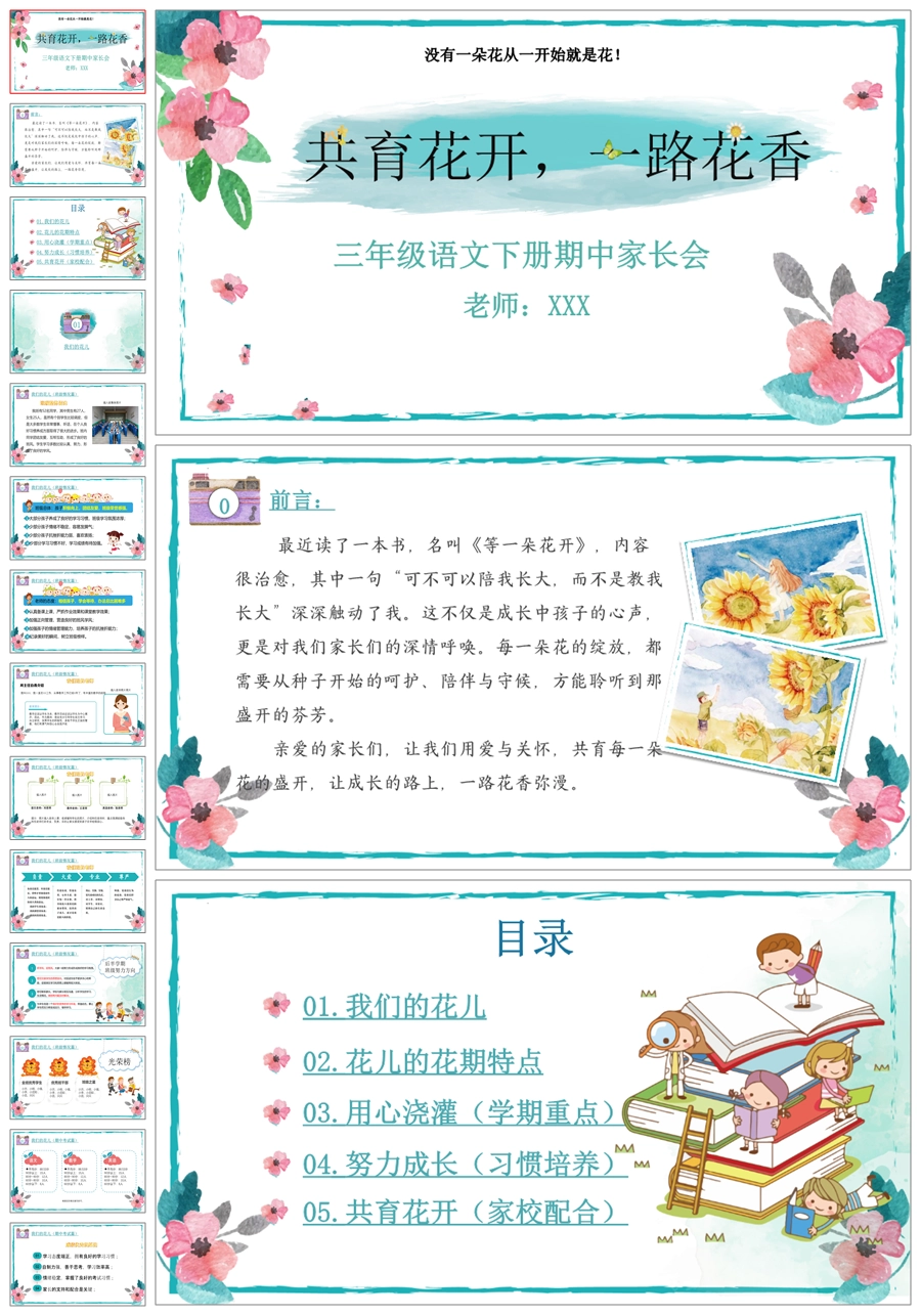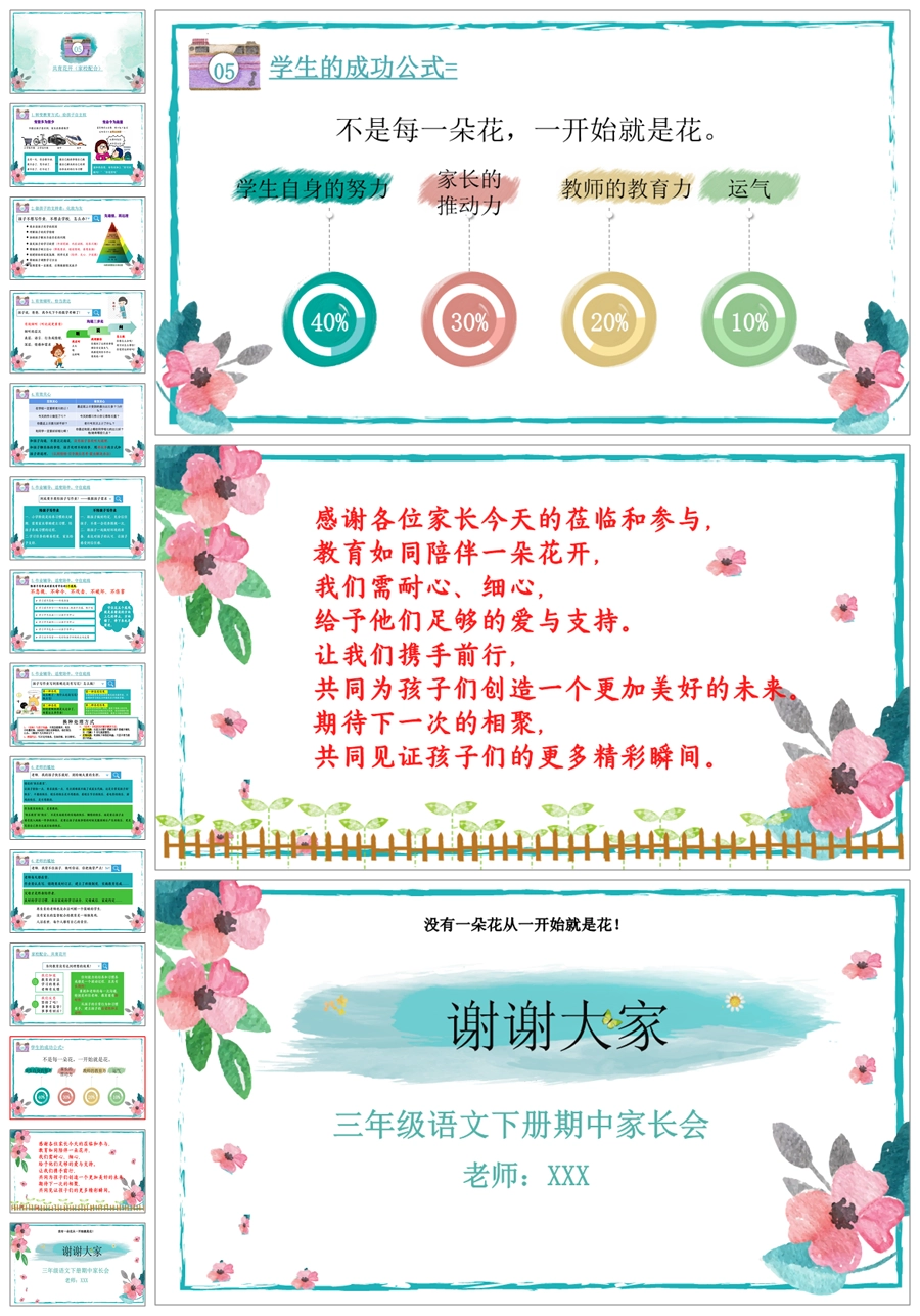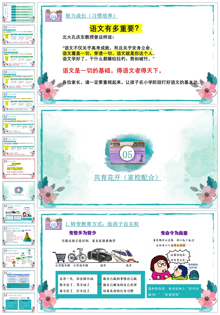 首页 三年级家长会 【5335】【三下】【语文】【共育花开 一路花香】三年级下学期期中家长会PPT课件+发言稿