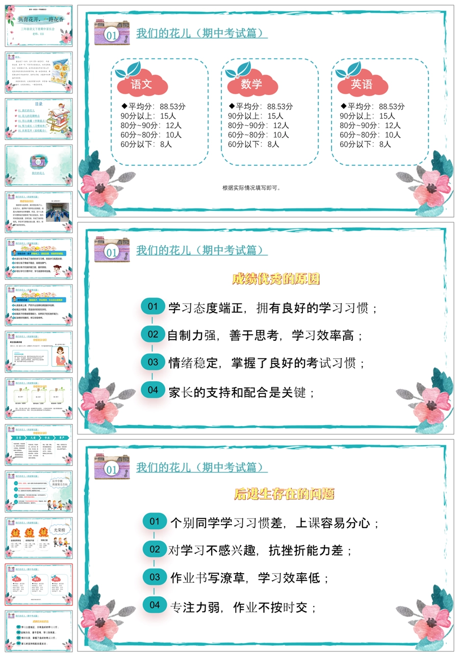 【5335】【三下】【语文】【共育花开 一路花香】三年级下学期期中家长会PPT课件+发言稿