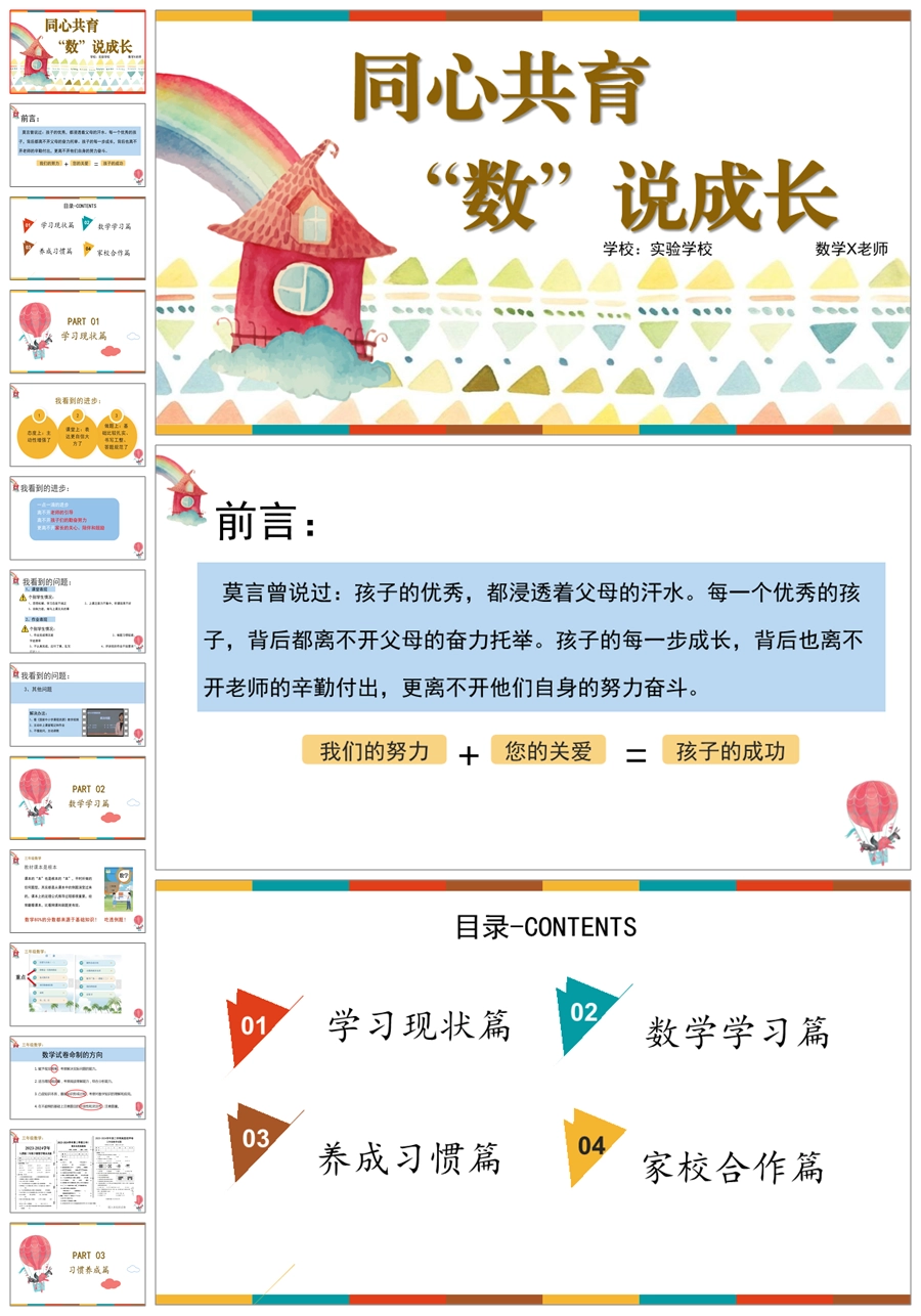 【5340】【通用】 同心共育“数”说成长三年级数学家长会PPT课件+发言稿