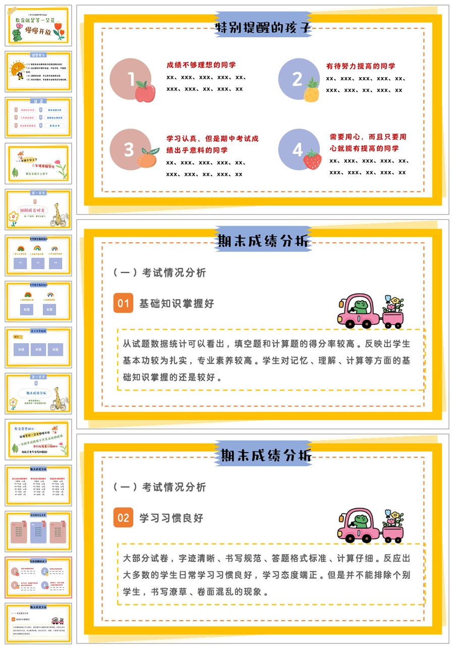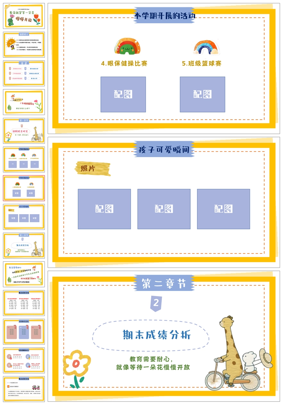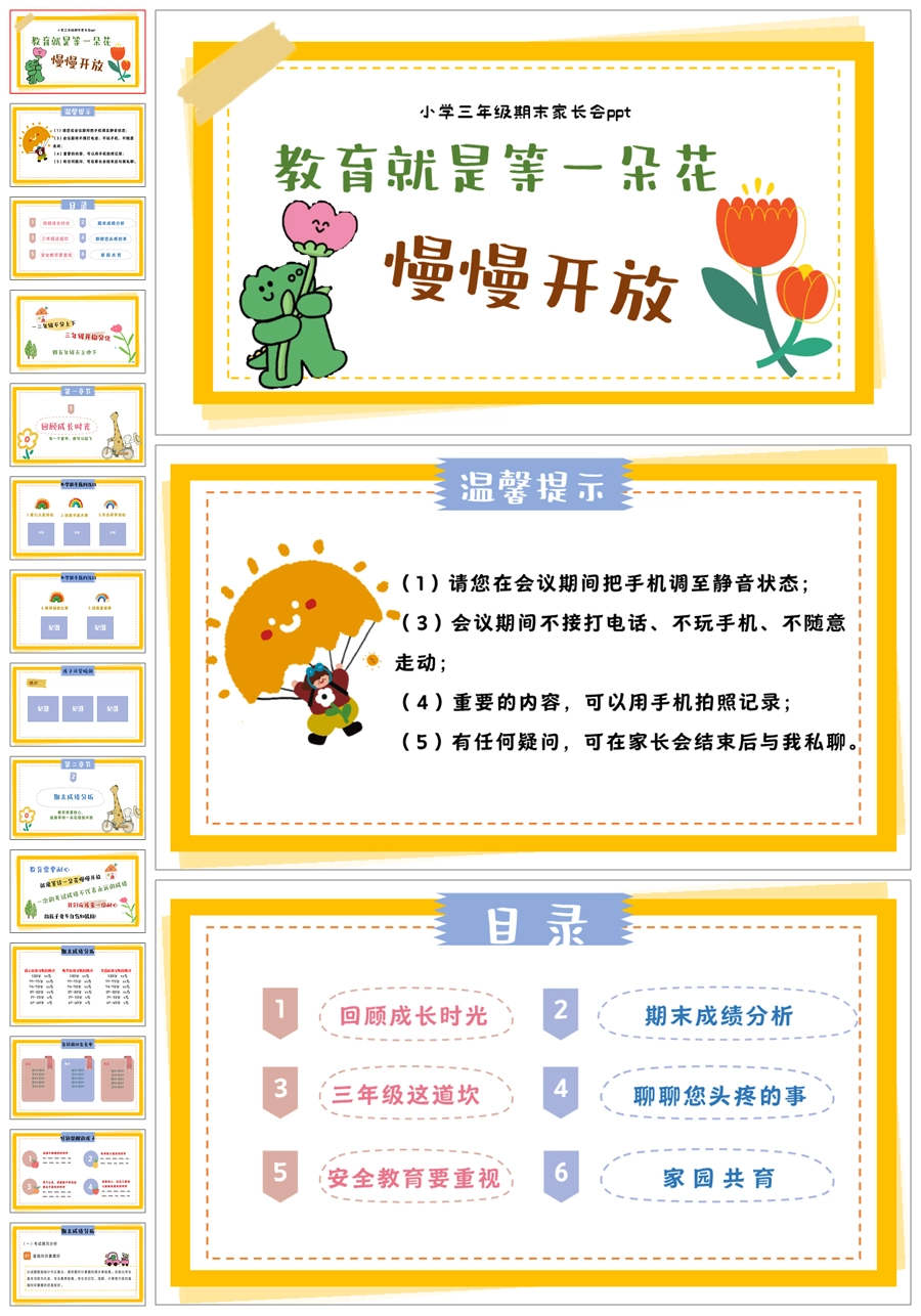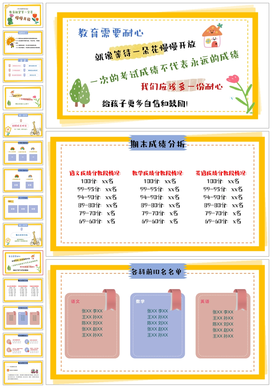 【5341】三年级下期末成绩分析家长会《教育就是等一朵花,慢慢开放》PPT课件+发言稿