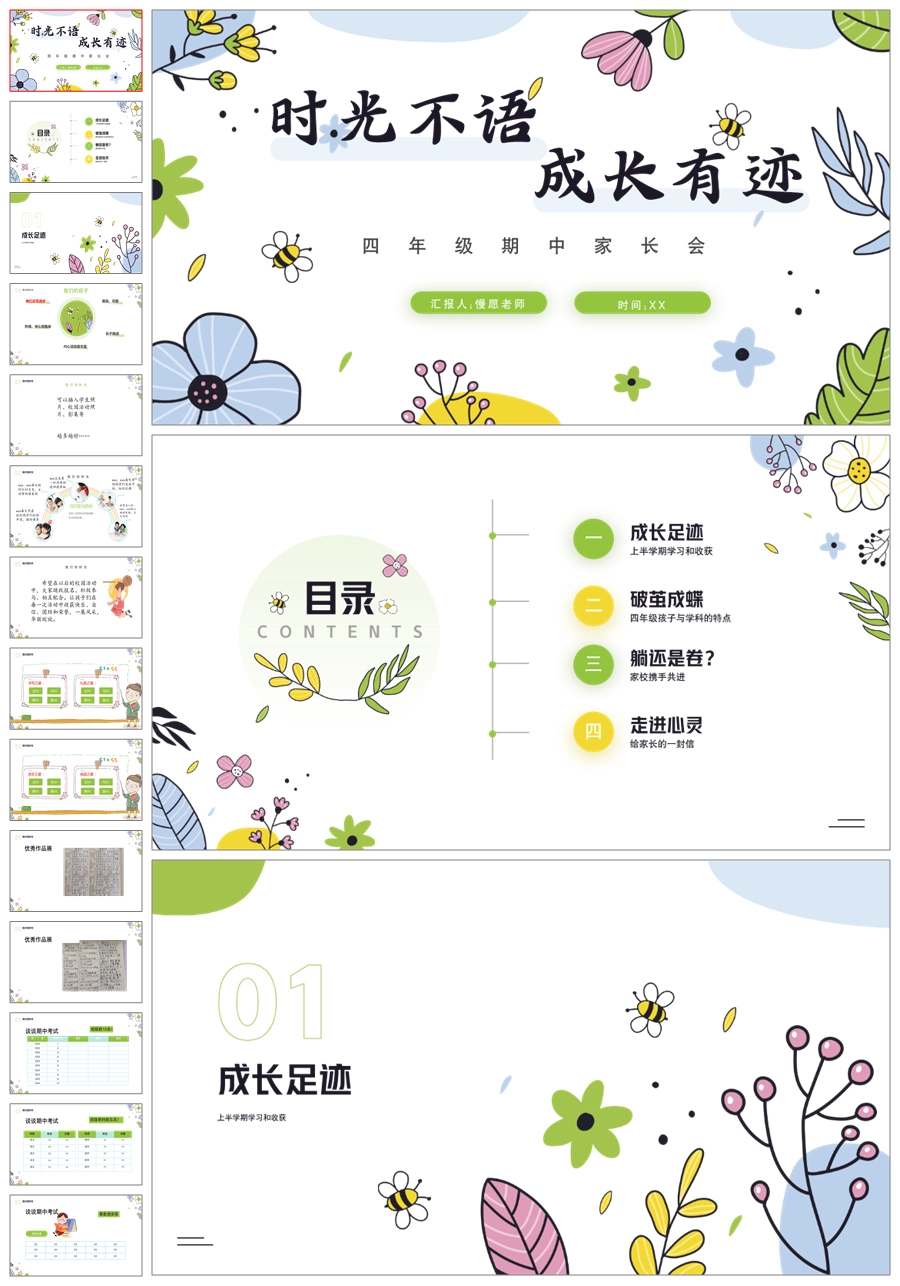 【5343】【四年级】【时光不语 成长有迹】四年级期中家长会PPT课件+发言稿