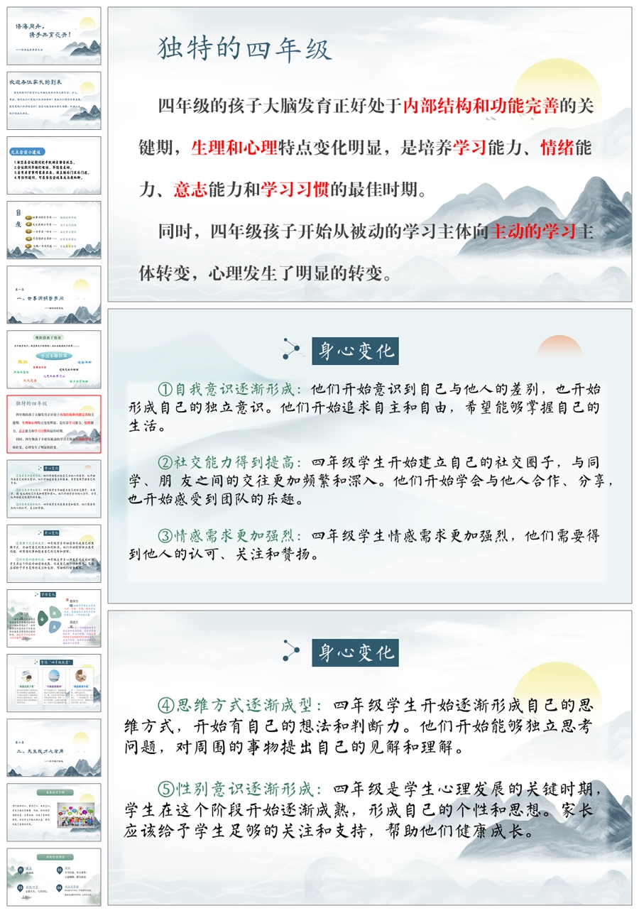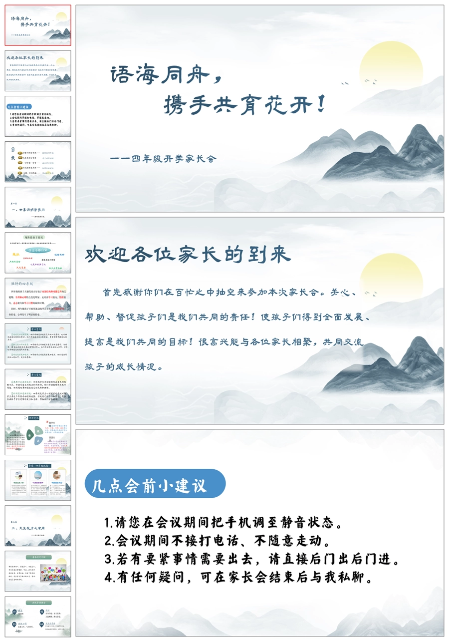 【5344】【四年级】语文【海同舟,携手共育花开!】四年级家长PPT课件+发言稿