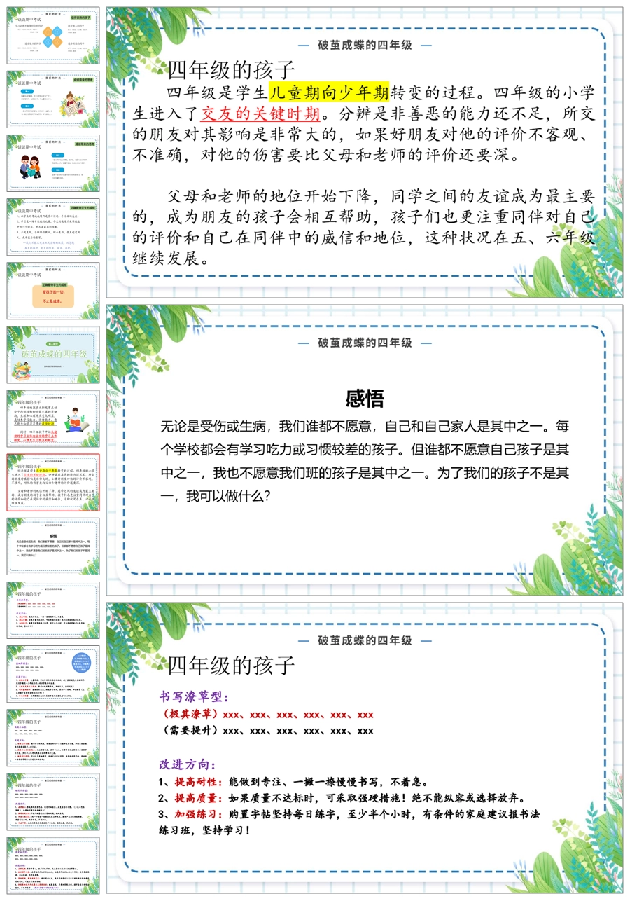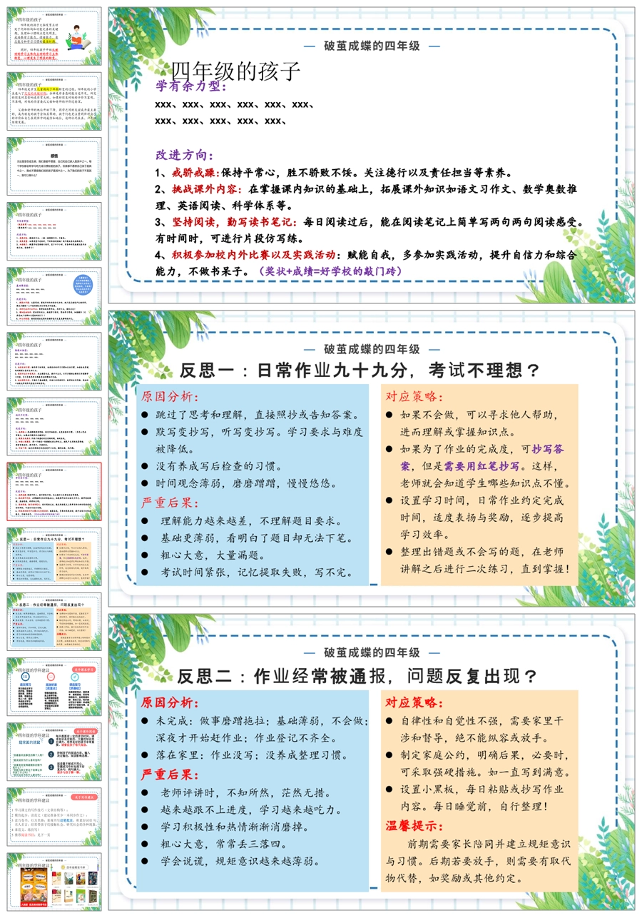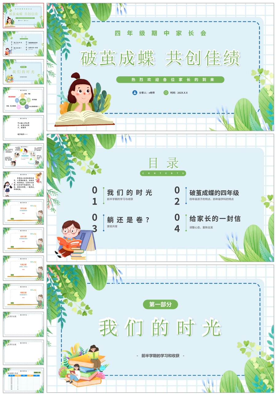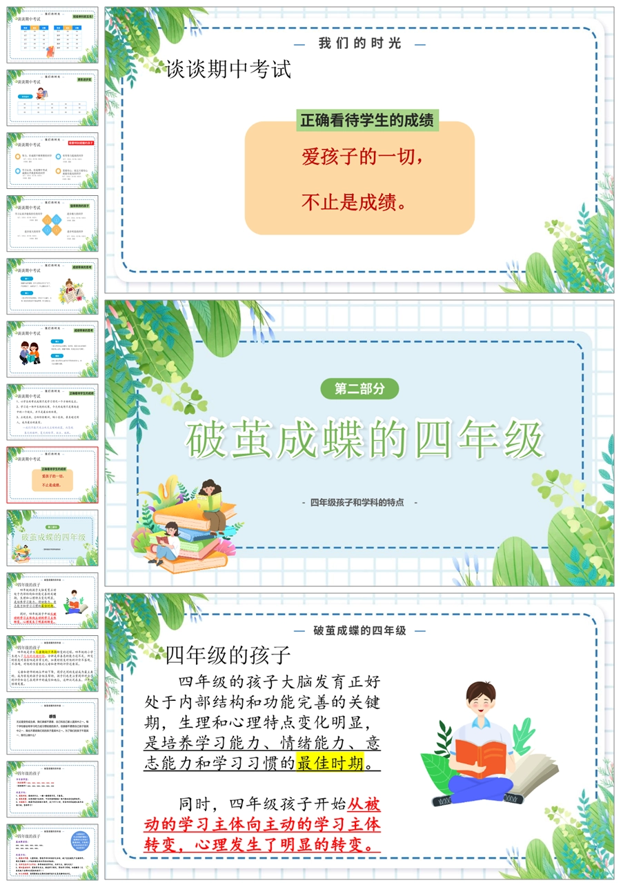 首页 四年级家长会 【5347】【四上】【破茧成蝶 共创佳绩】四年级上学期期中家长会PPT课件+发言稿