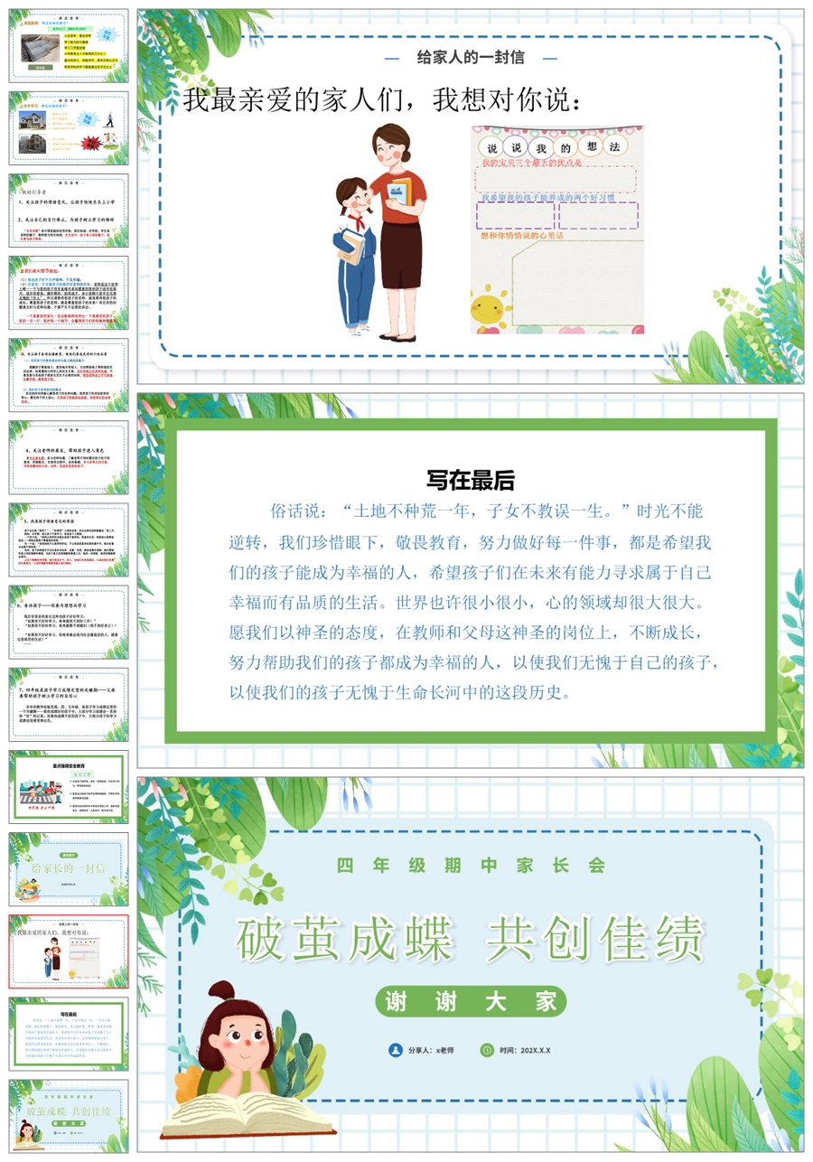 【5347】【四上】【破茧成蝶 共创佳绩】四年级上学期期中家长会PPT课件+发言稿
