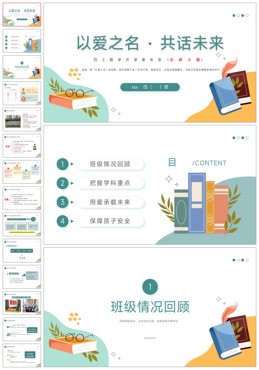 首页 四年级家长会 【5353】【四上】【数学】【以爱之名 共话成长】四年级上学期开学家长会-北师大版PPT课件+发言稿