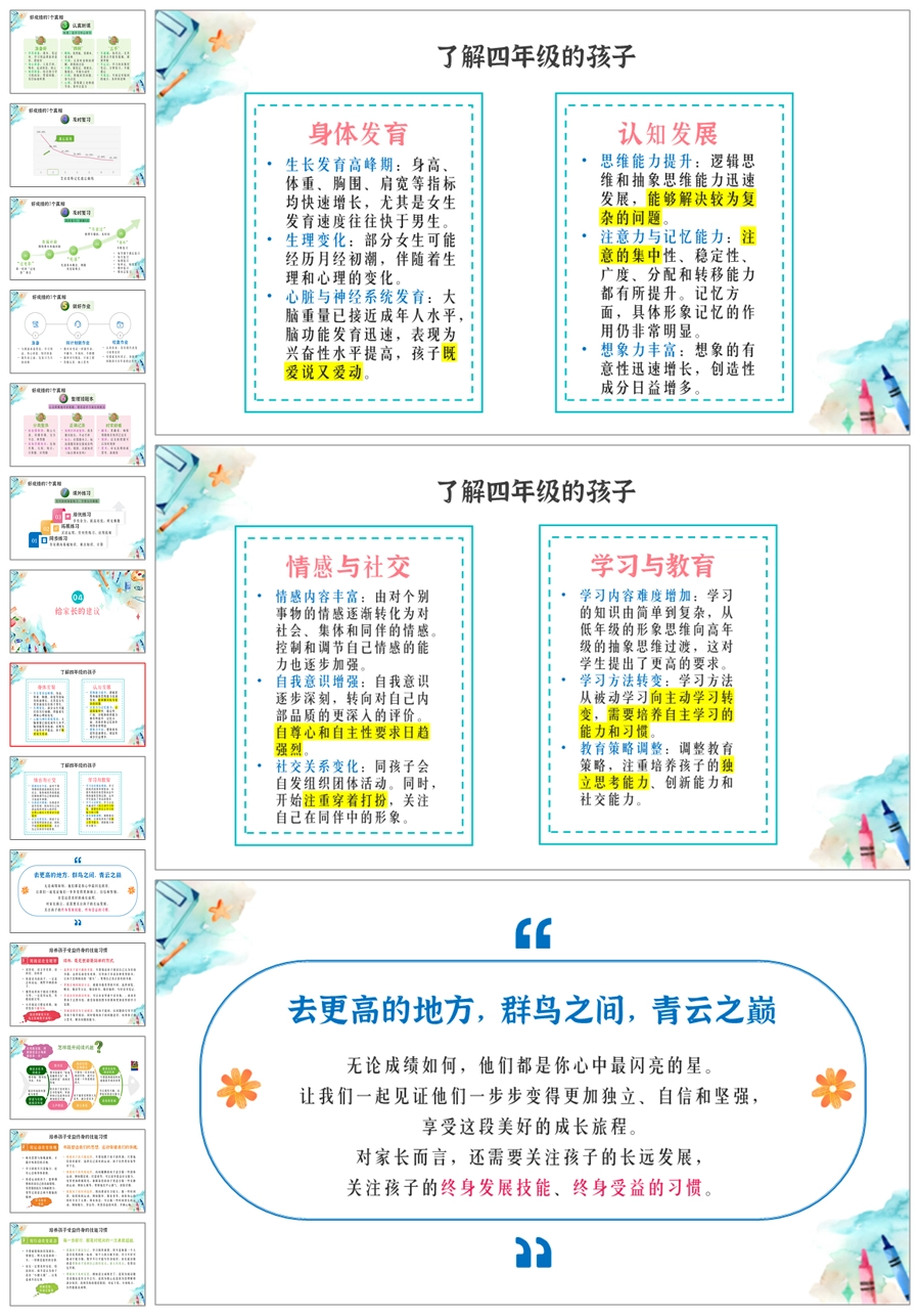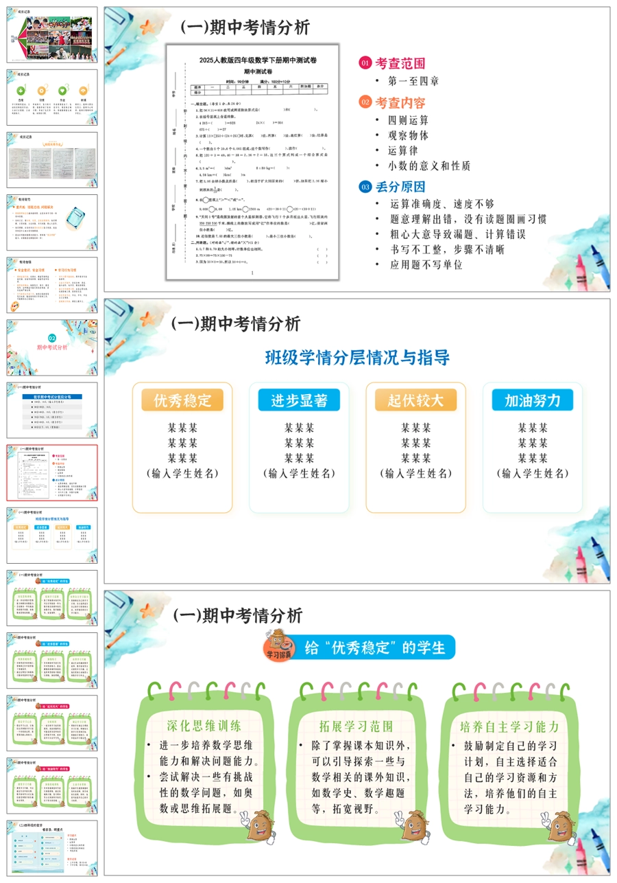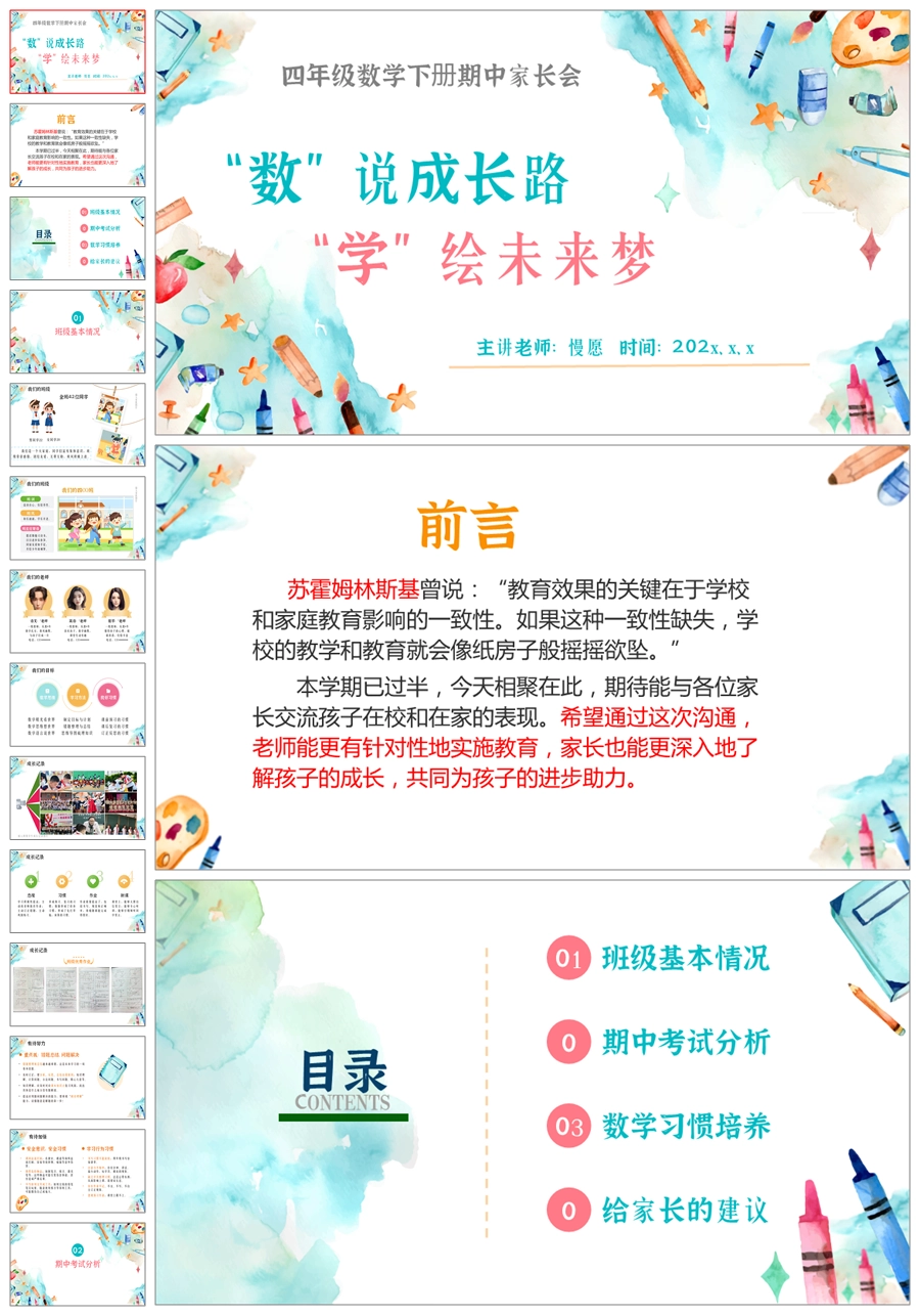 【5361】【四下】【数说成长路 学绘未来梦】四年级下学期期中家长会PPT课件+发言稿