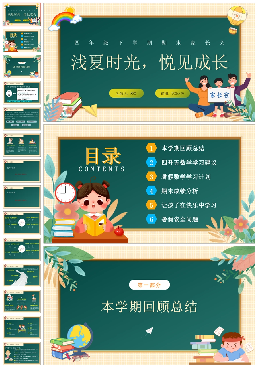 首页 四年级家长会 【5364】【四下】【数学】【浅夏时光,悦见成长】四年级下学期期末家长会PPT课件+发言稿