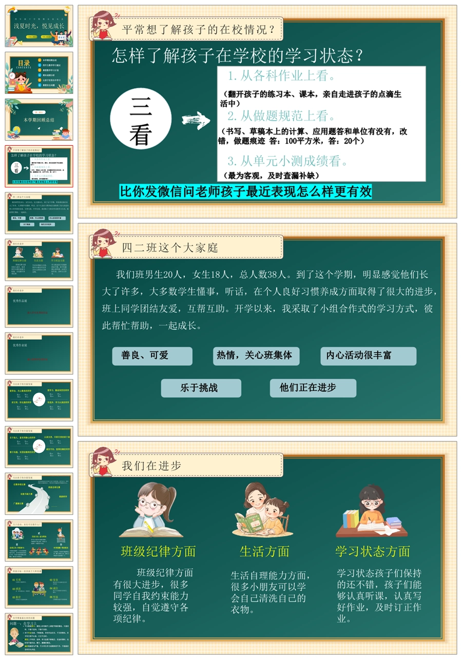 【5364】【四下】【数学】【浅夏时光,悦见成长】四年级下学期期末家长会PPT课件+发言稿