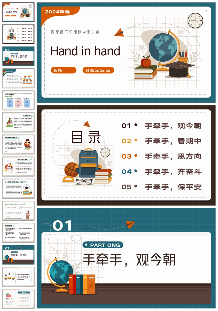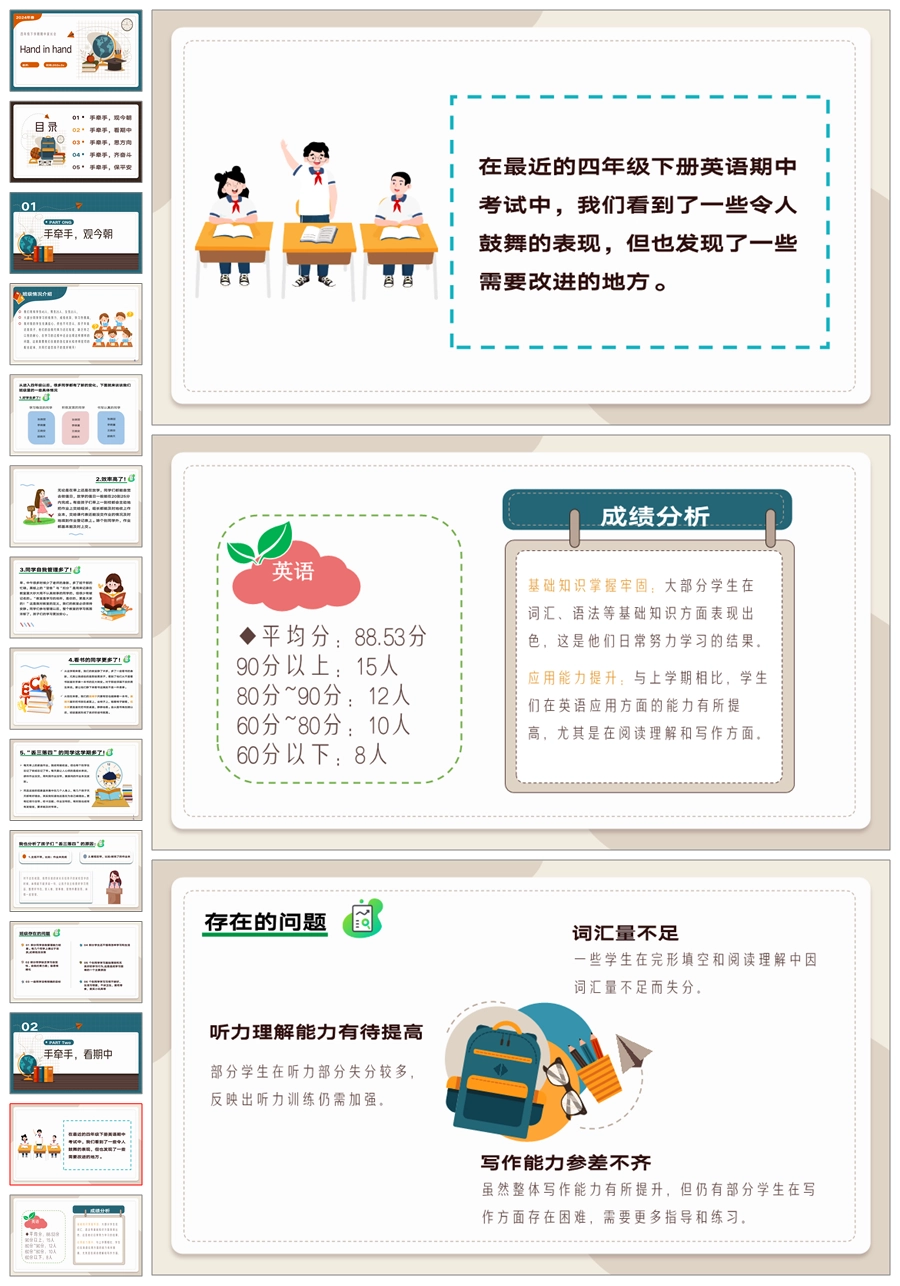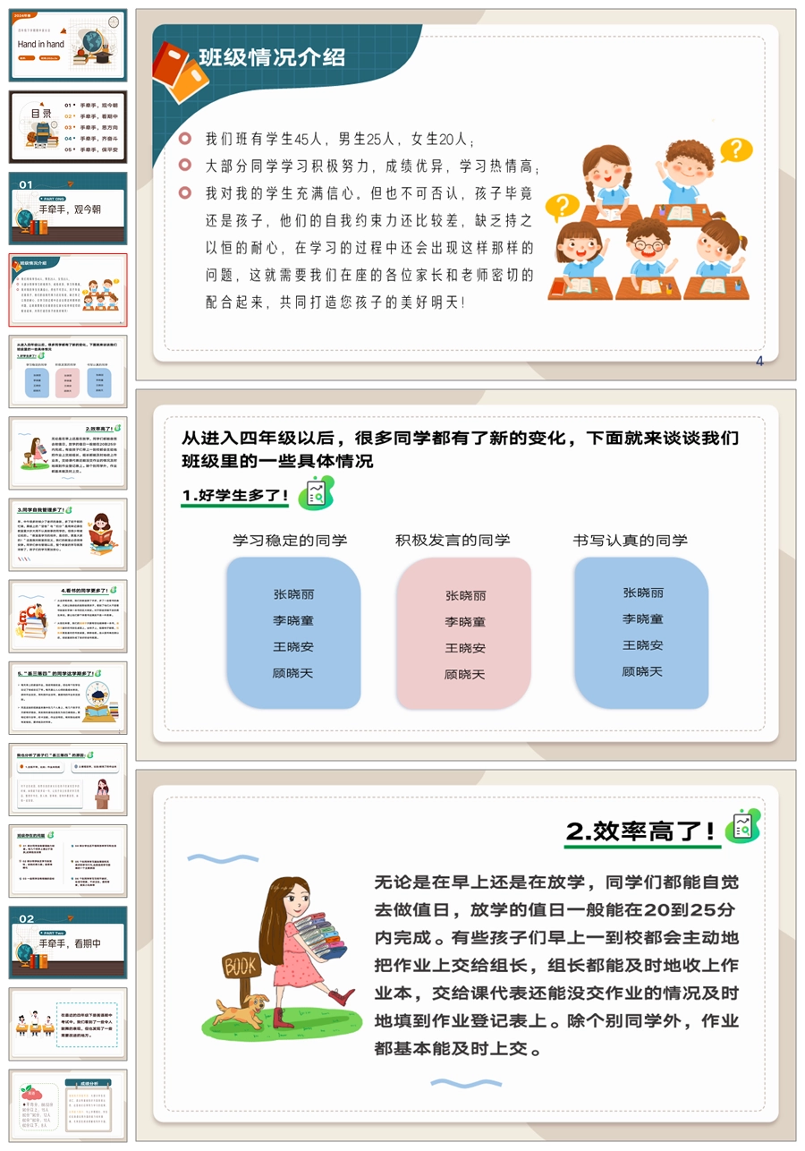 【5367】【四下】【英语】【Hand in hand】四年级下学期期中家长会PPT课件+发言稿