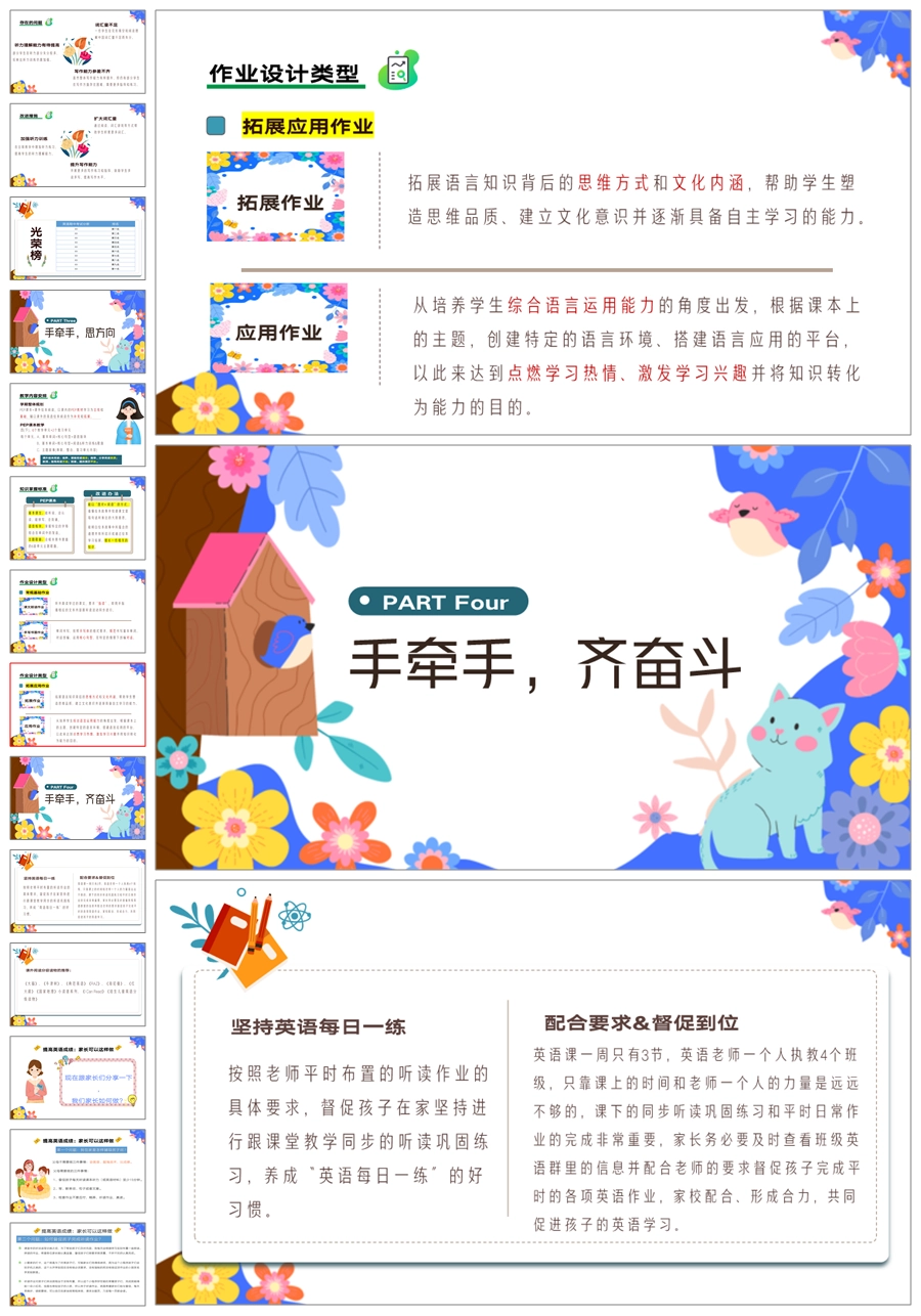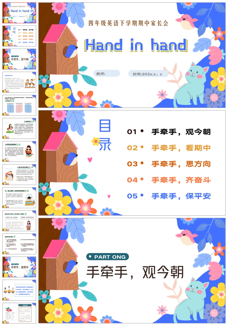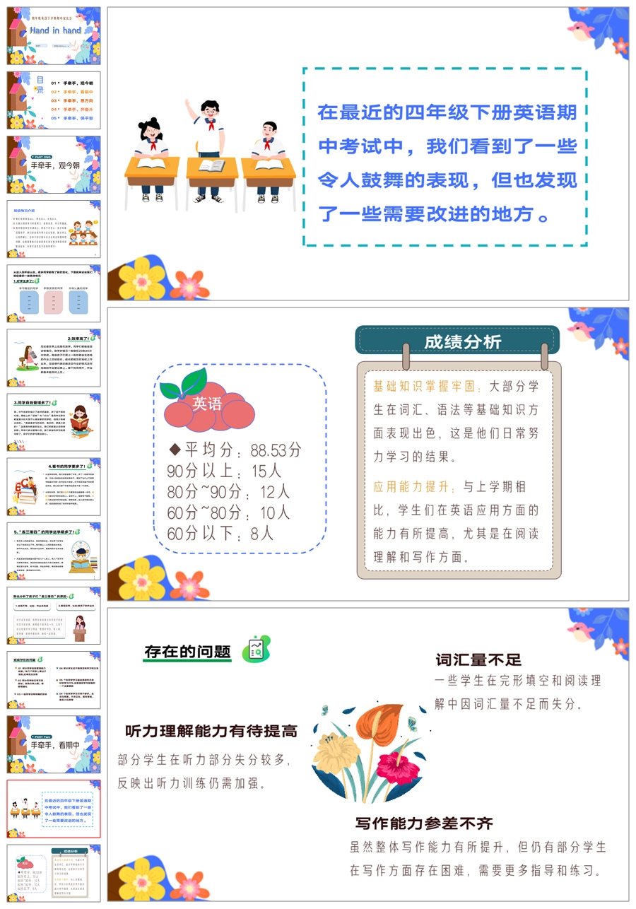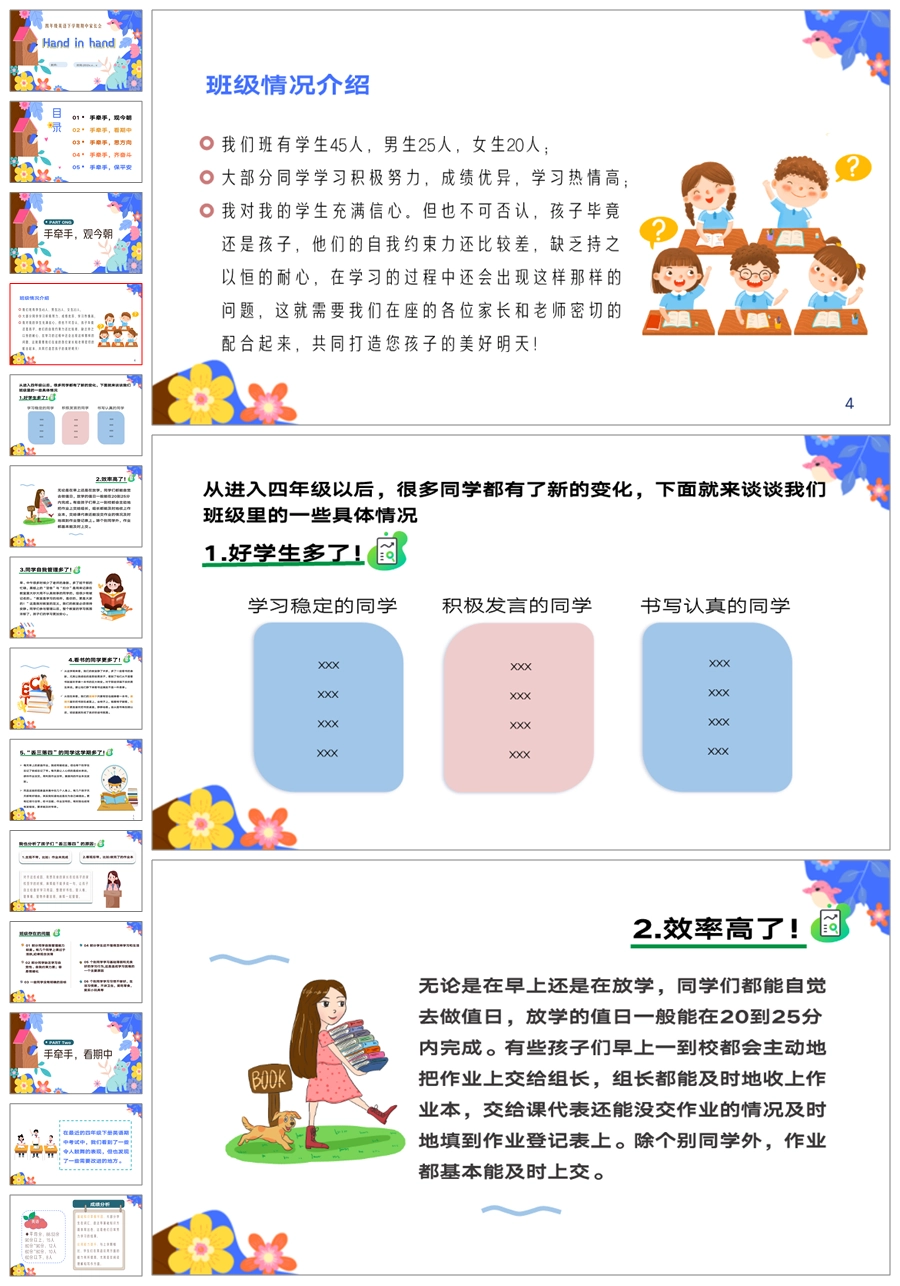 【5375】【四下英语】g【Hand in hand】四年级下学期期中家长会PPT课件+发言稿