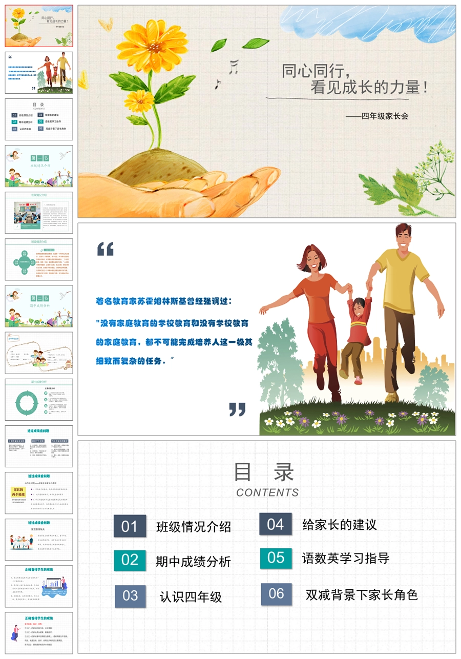 【5376】四年级家长会【同心同行,看见成长的力量!】PPT课件+发言稿