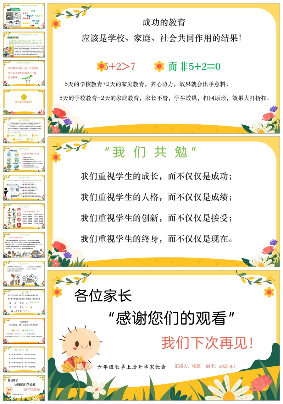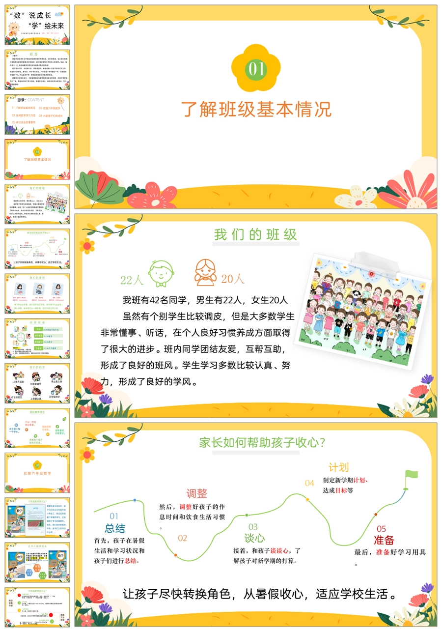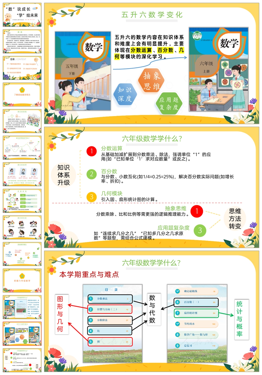 【5407】【六上】【数学】【“数”说成长,“学”绘未来】六年级上学期开学家长会PPT课件+发言稿
