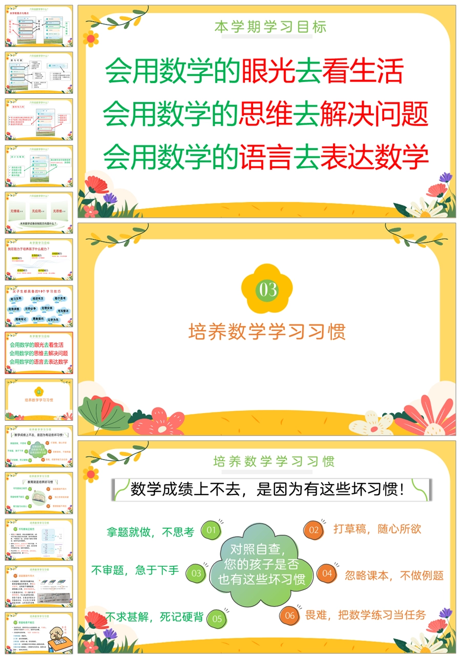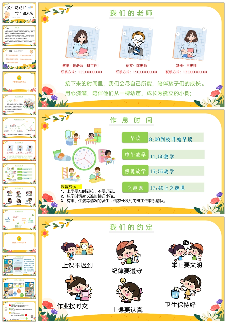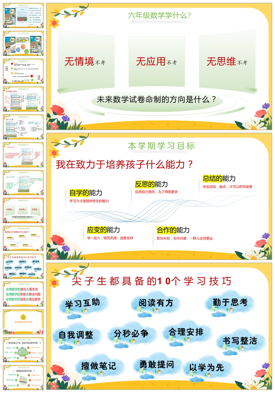 【5407】【六上】【数学】【“数”说成长,“学”绘未来】六年级上学期开学家长会PPT课件+发言稿