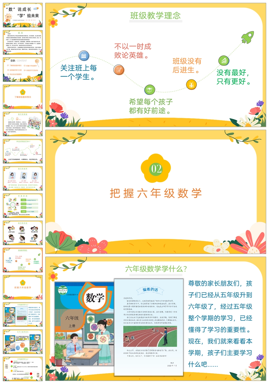 首页 六年级家长会 【5407】【六上】【数学】【“数”说成长,“学”绘未来】六年级上学期开学家长会PPT课件+发言稿