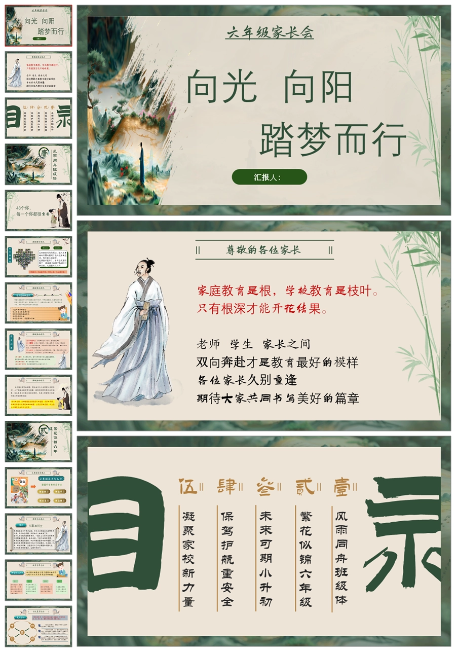 【5412】【六上】【语文】【向光向阳 踏梦而行】六年级上学期家长会PPT课件+发言稿