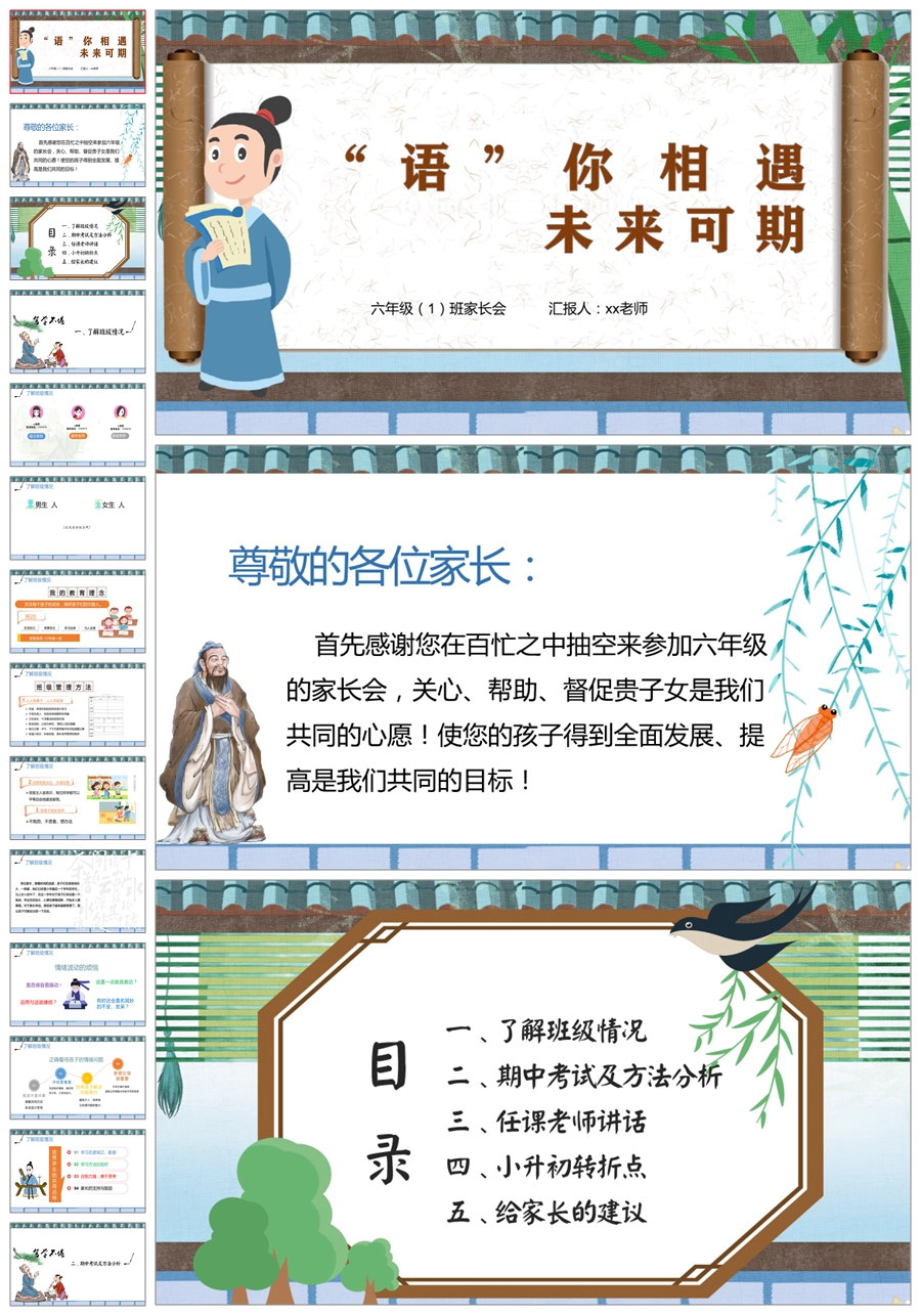 【5424】【六下】语文【语你相遇 未来可期】六年级下学期期中家长会PPT课件+发言稿