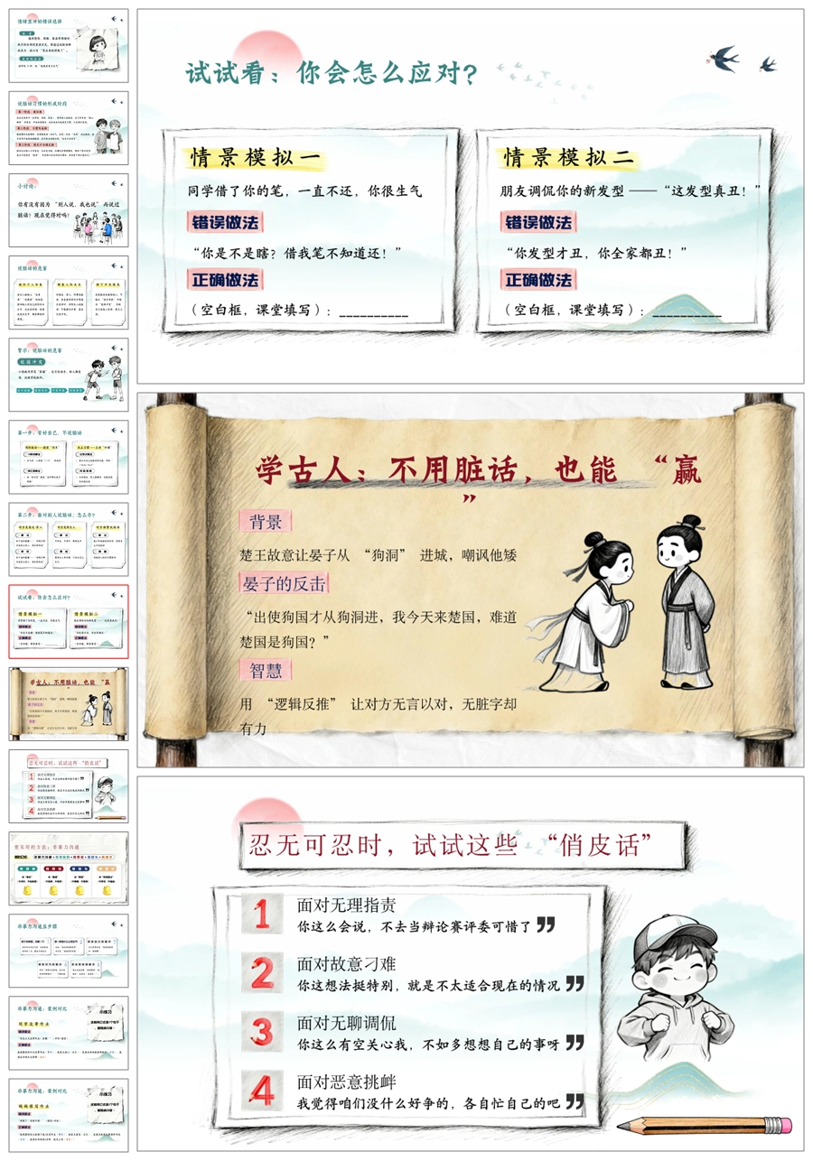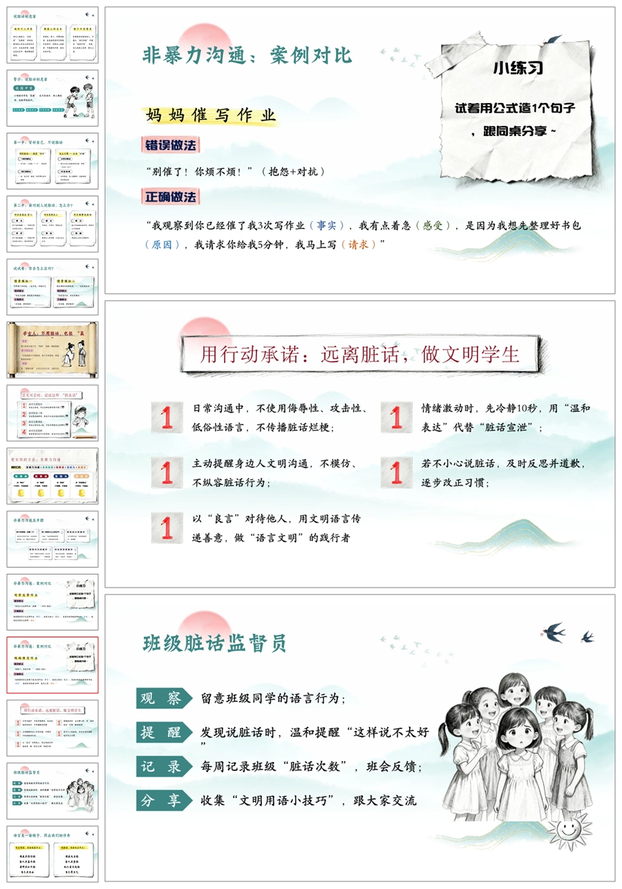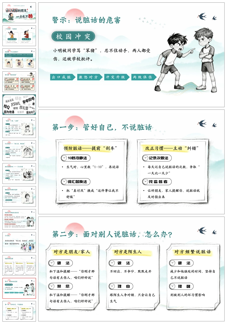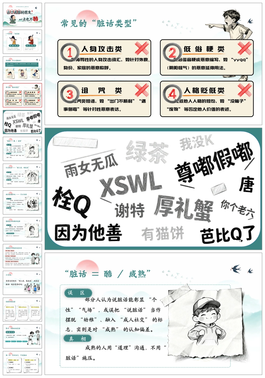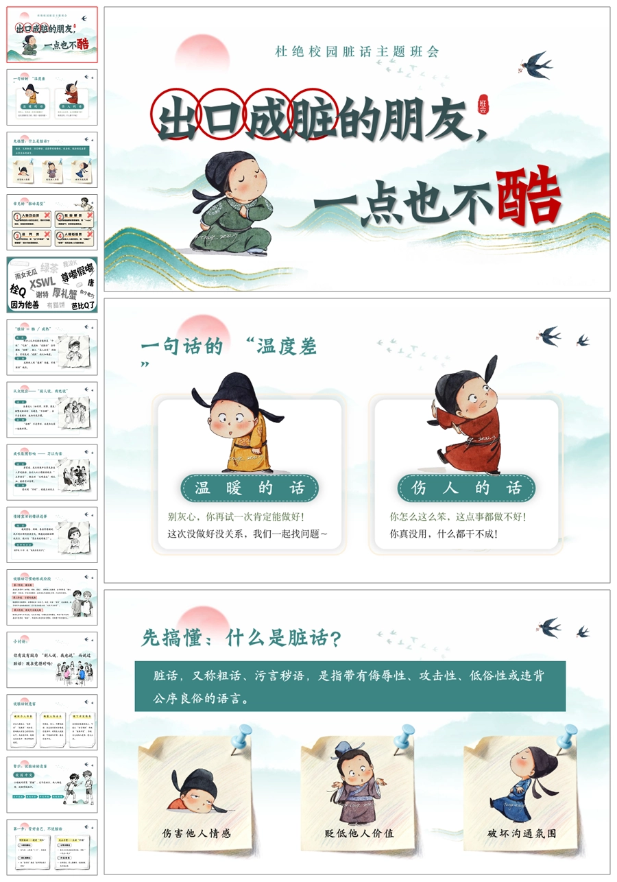 【5427】《不说脏话“出口成脏”》文明礼仪主题班会ppt课件+发言稿