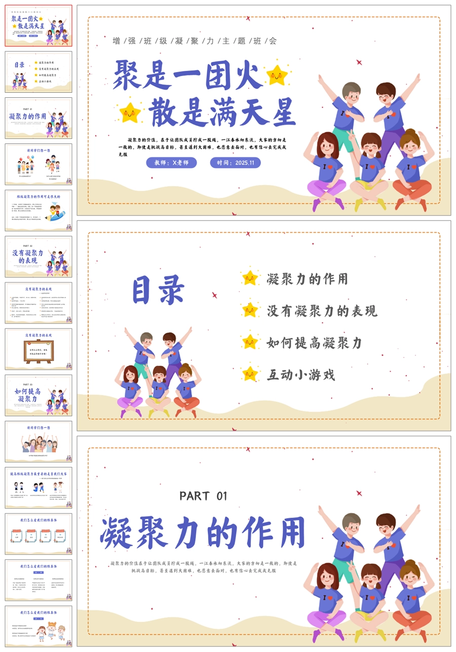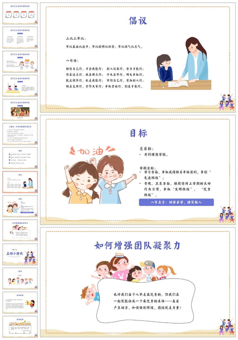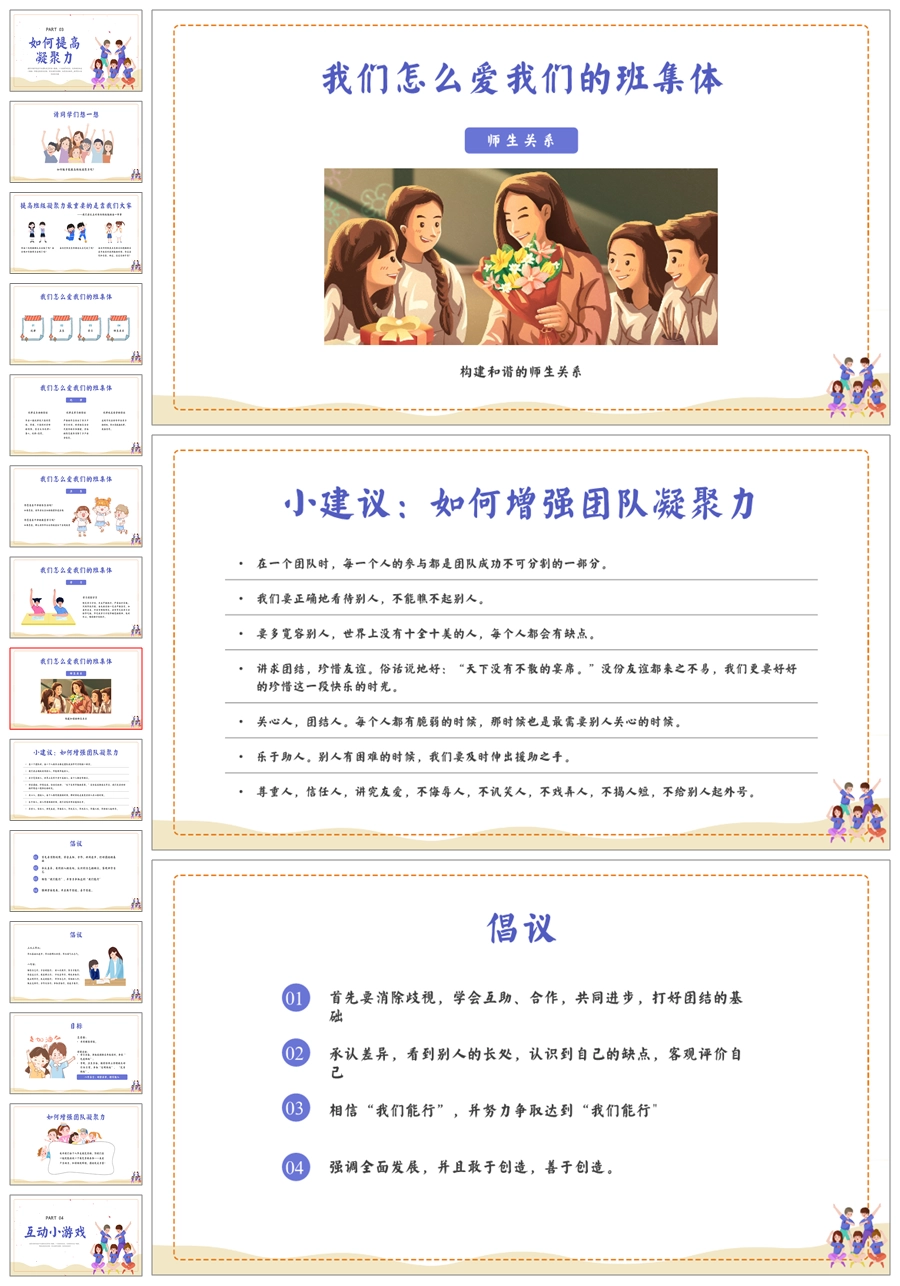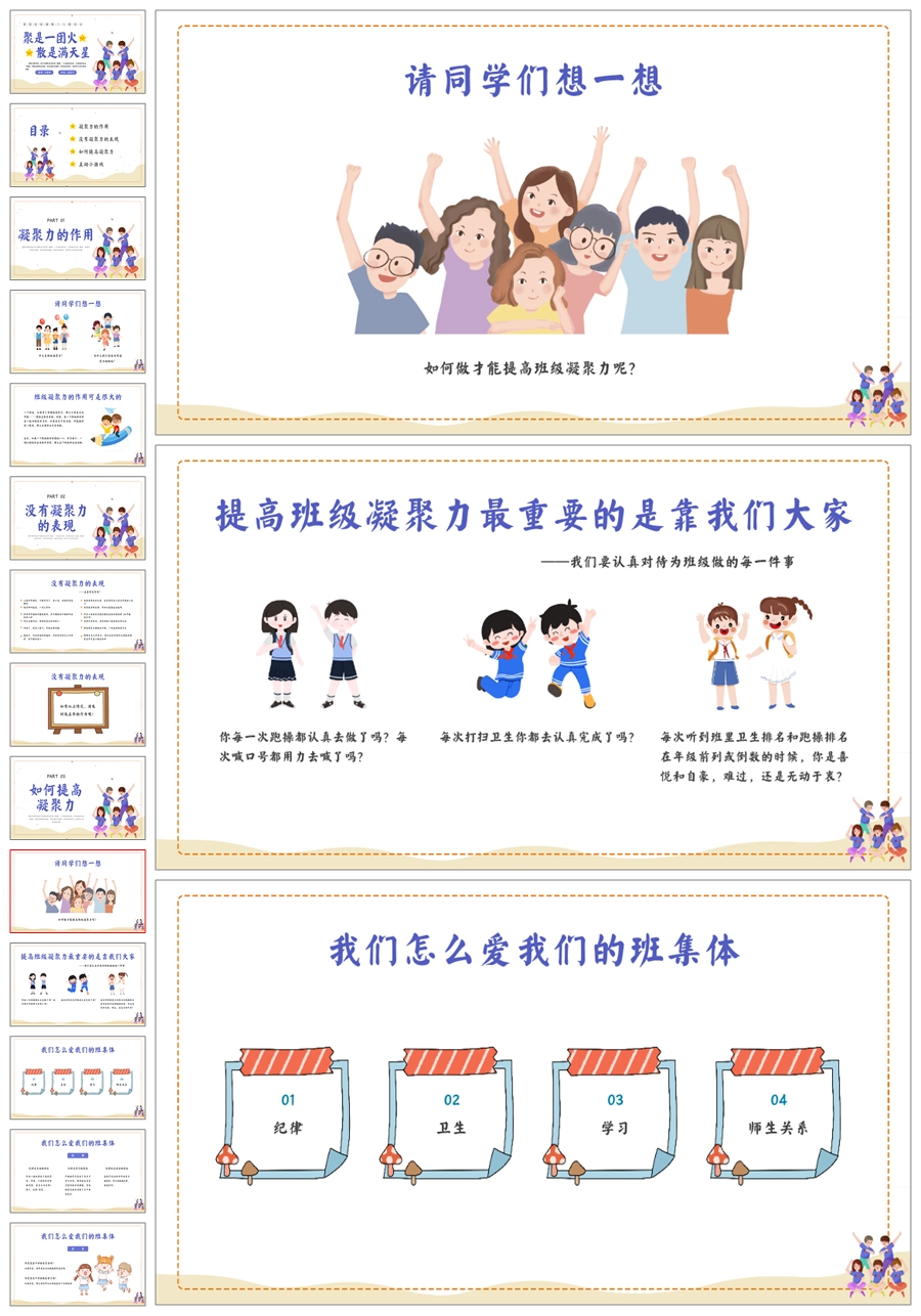 【5435】《弘扬团结之风,共筑集体荣誉》增强班级凝聚力主题班会PPT课件+发言稿