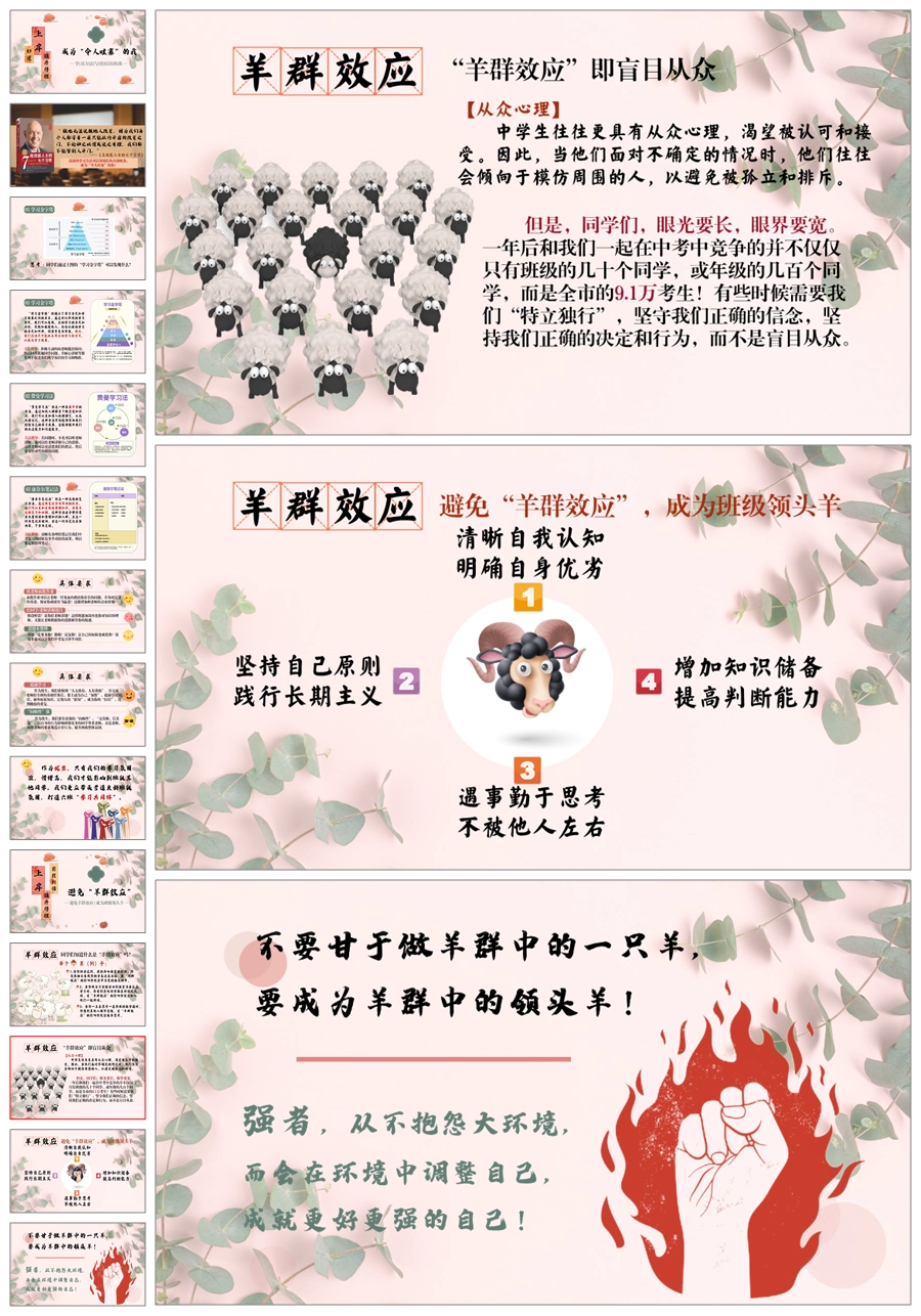 【5437】《拒绝羊群效应》尖子生会议强者不抱怨环境ppt课件+教案