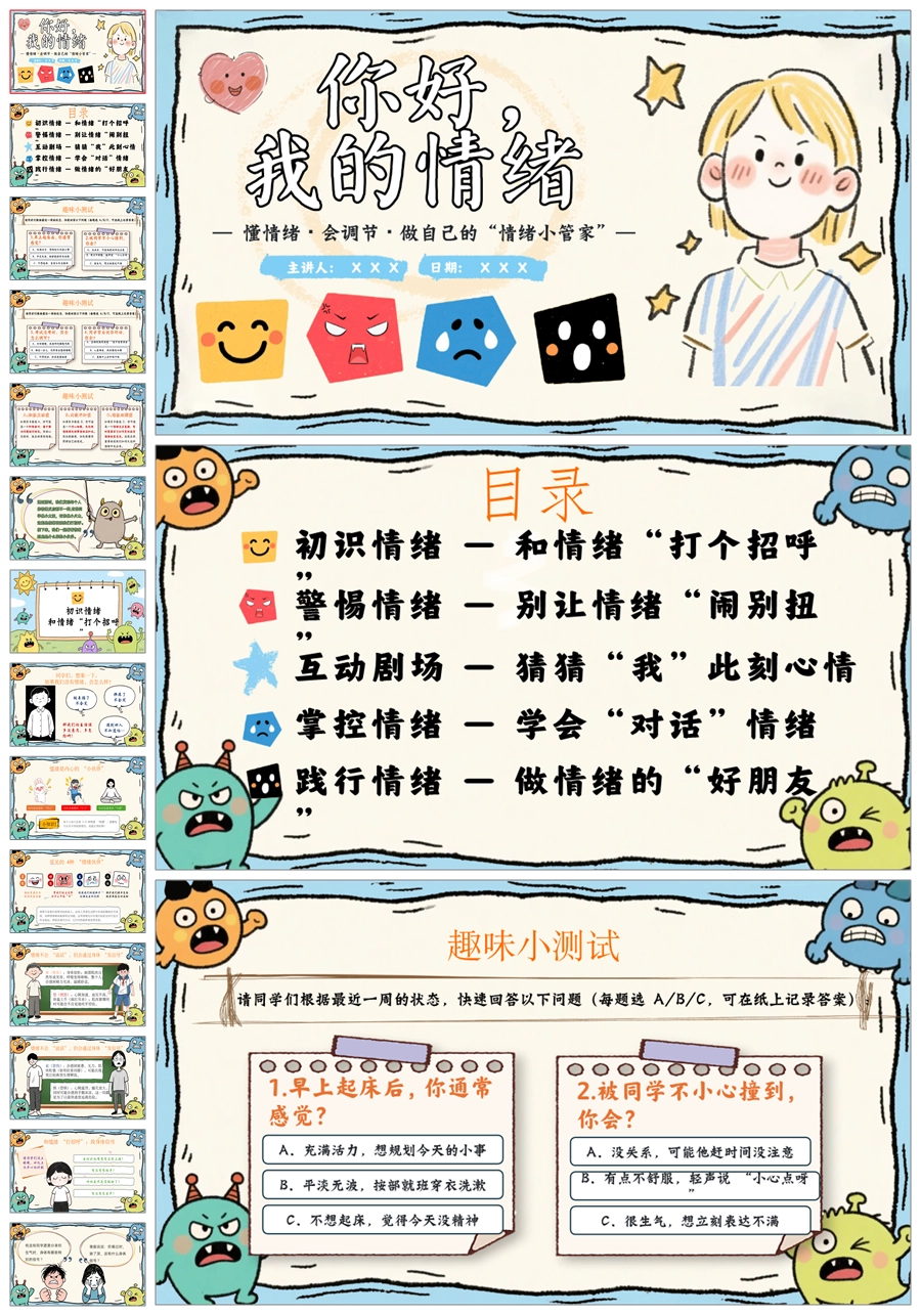 【5440】《你好,我的情绪》情绪管理班会ppt课件+发言稿+教案