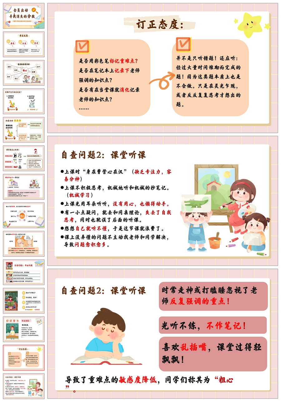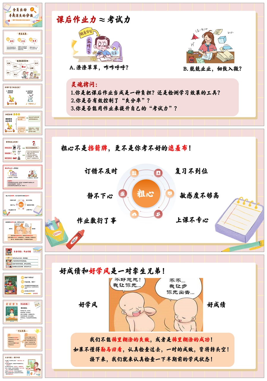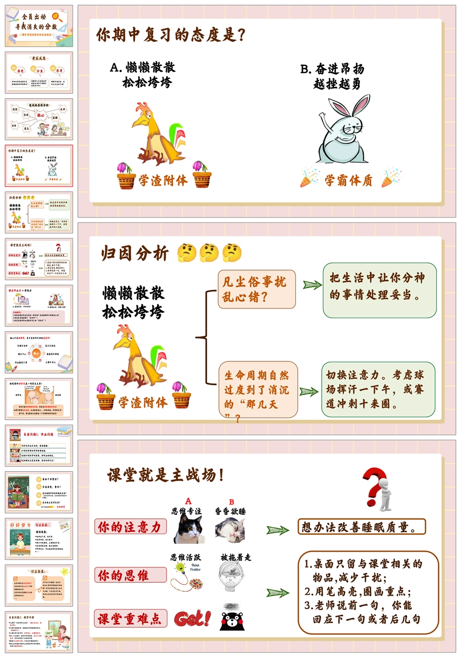 【5461】期中考试成绩分析《全员出动,寻找消失的分数》ppt课件+发言稿+反思表格+视频