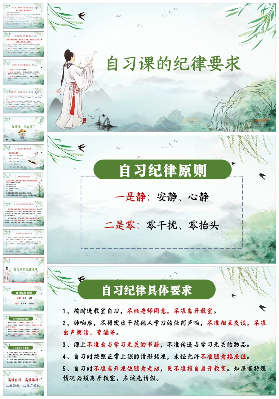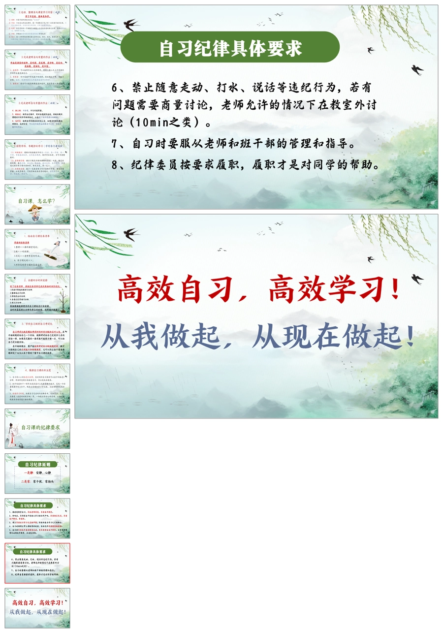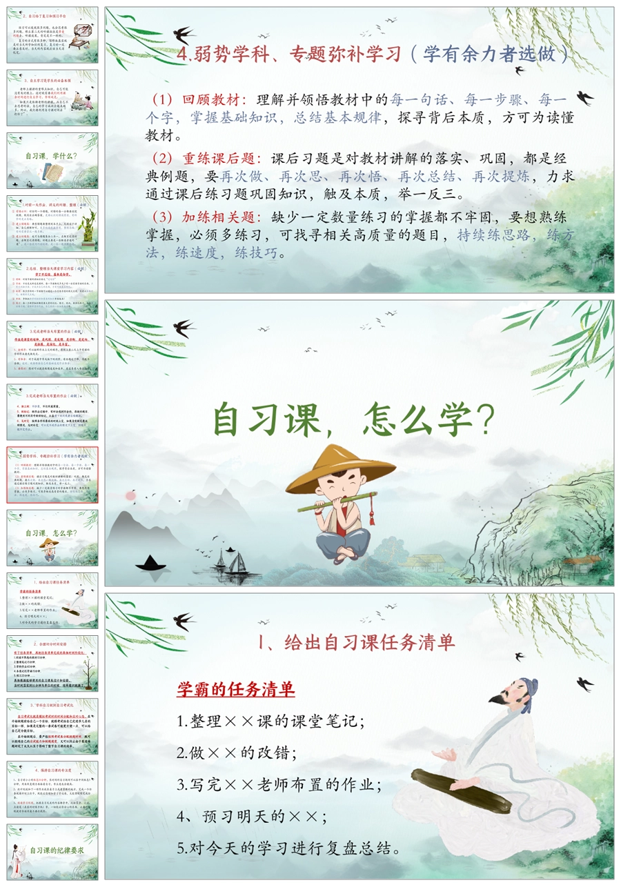 【5444】《如何上好自习课》静学教育主题班会PPT课件+发言稿