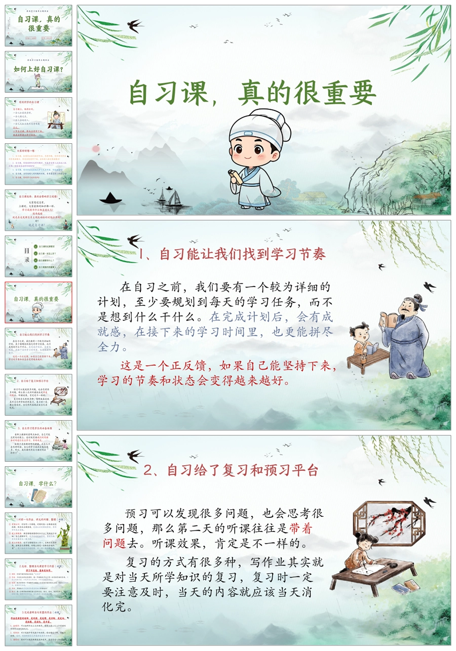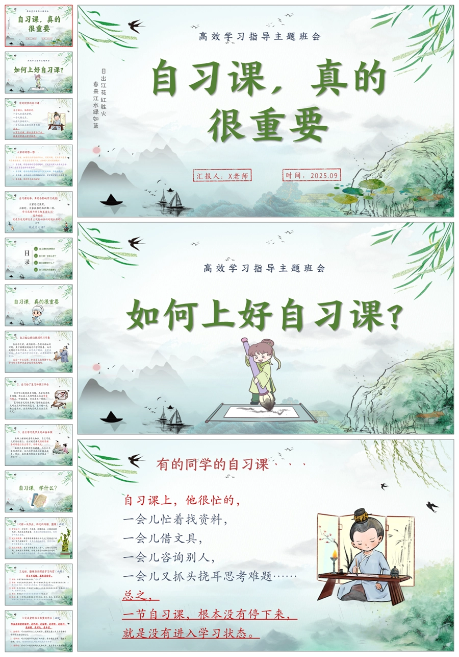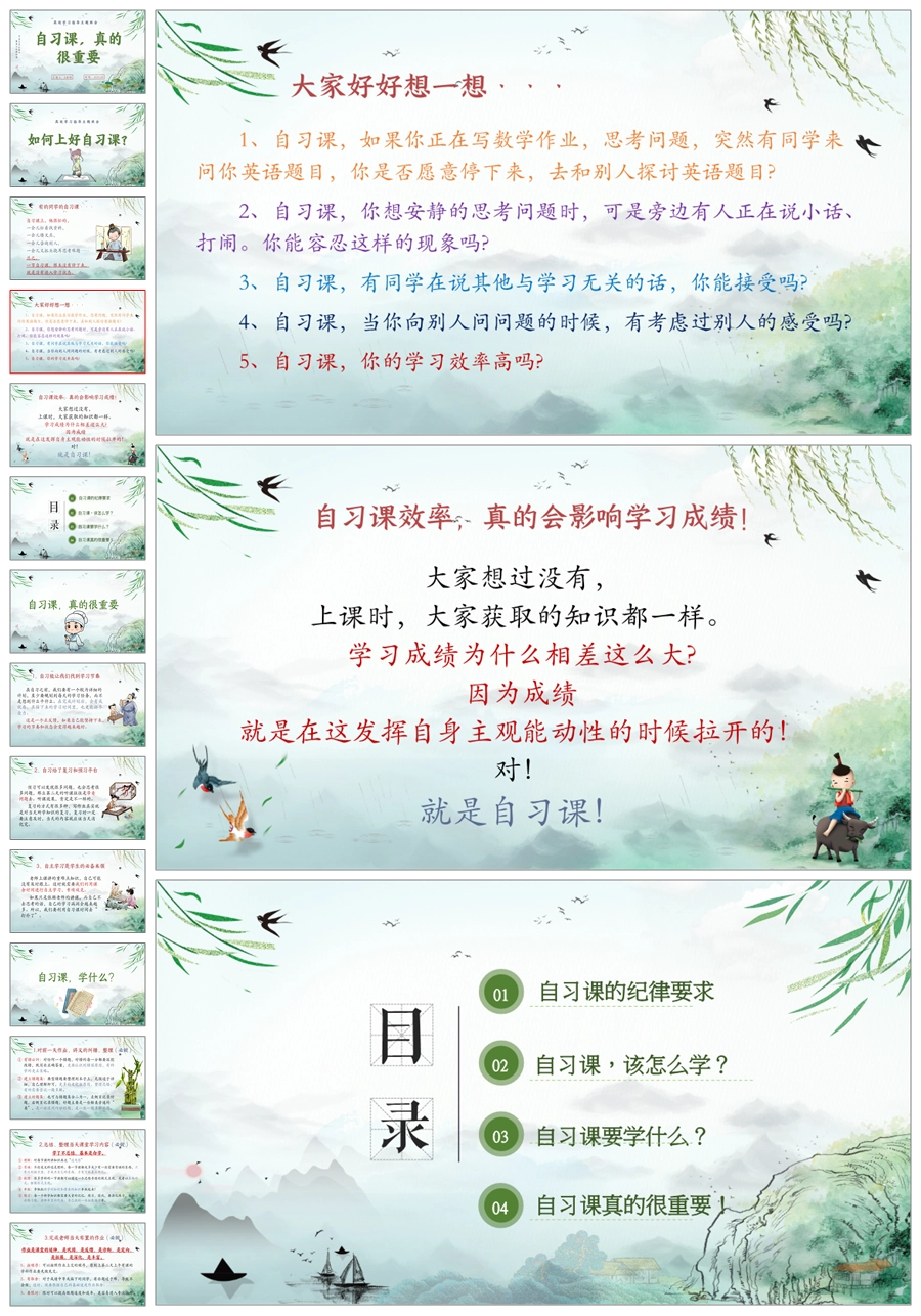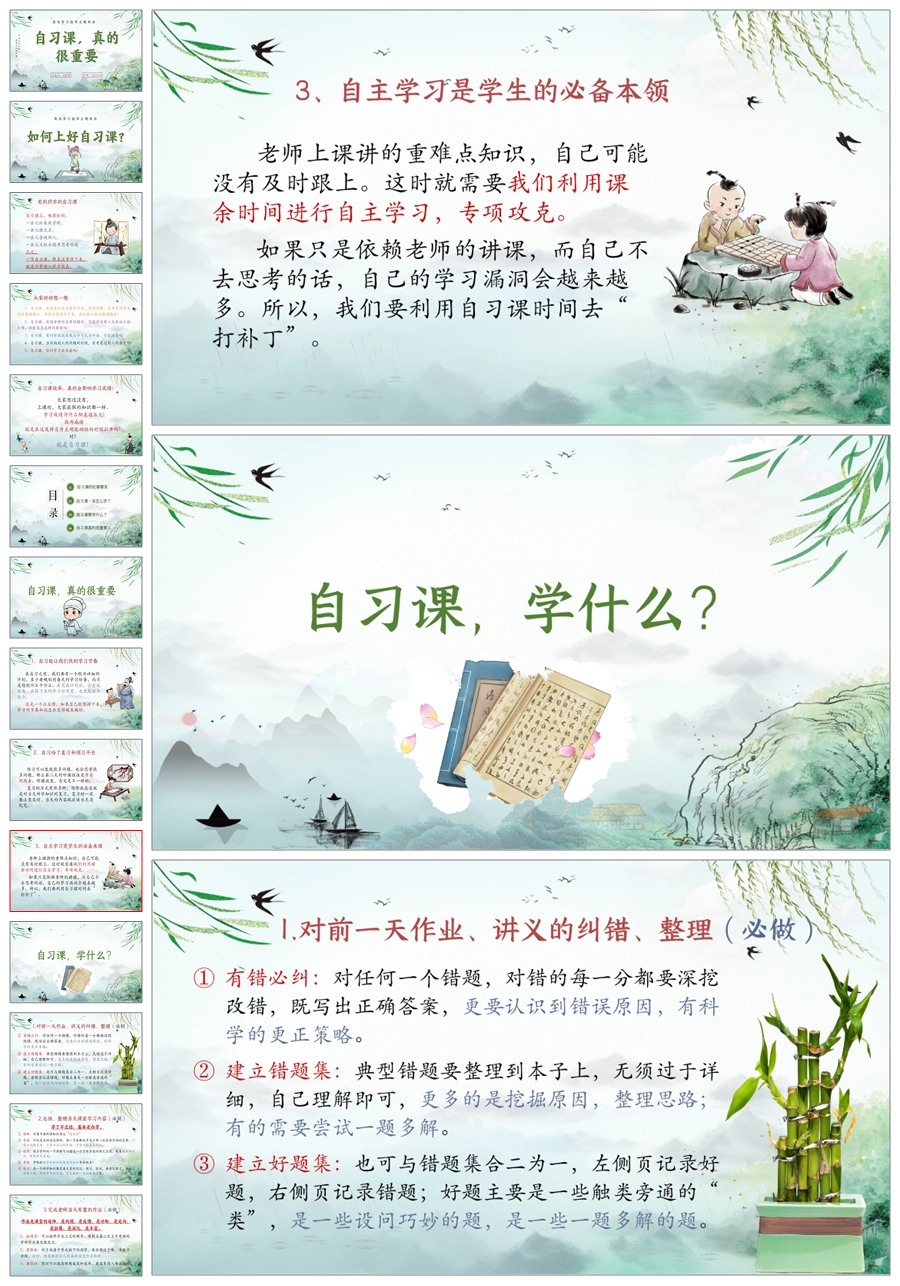 【5444】《如何上好自习课》静学教育主题班会PPT课件+发言稿