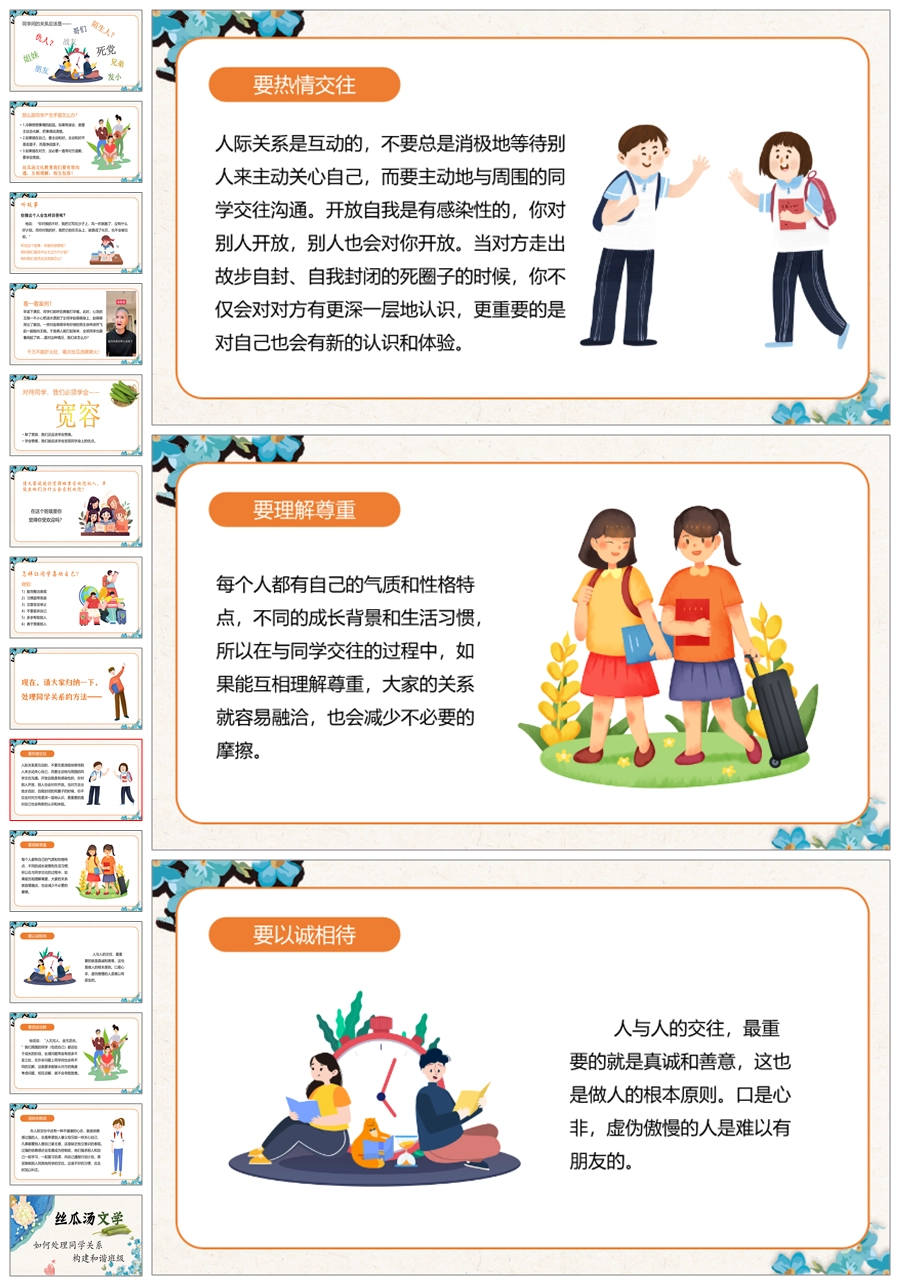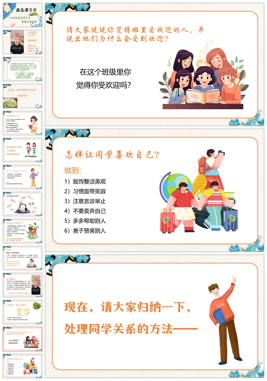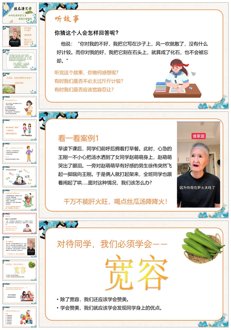 【5449】《丝瓜汤文学:如何正确处理同学关系,构建和谐班级》主题班会ppt课件+发言稿