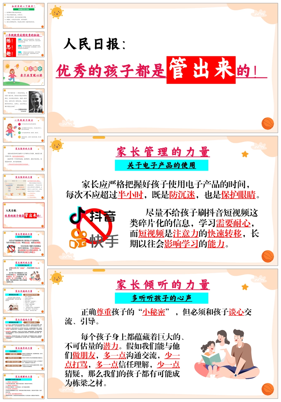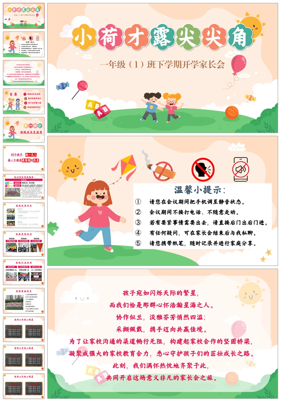 【5465】一年级下学期开学家长会《小荷才露尖尖角》数学一年级下学期家长会【北师大版】ppt课件+发言稿+暖场视频
