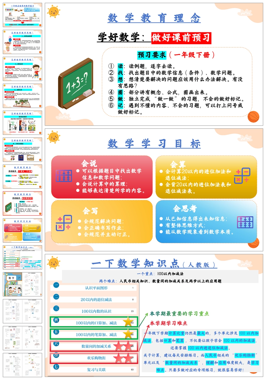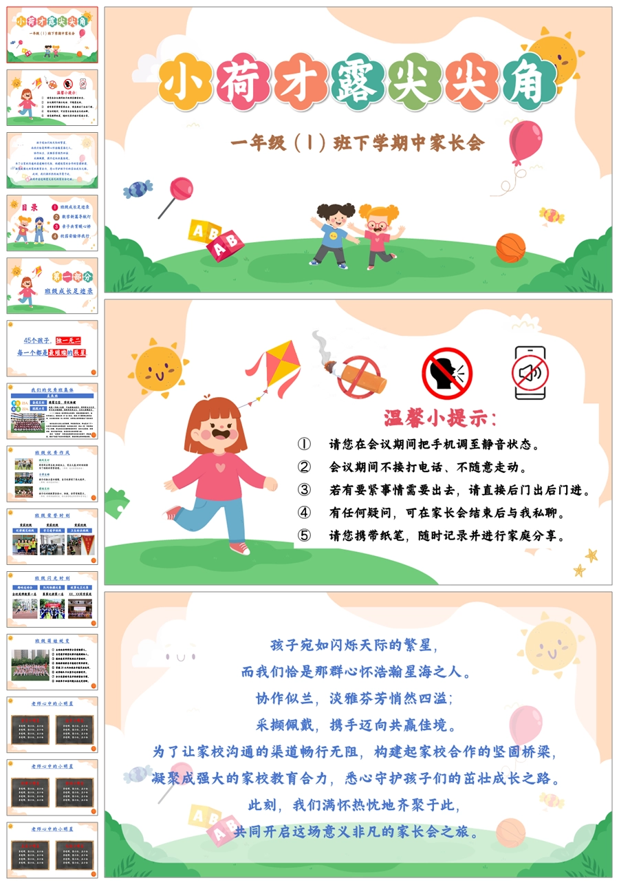 【5467】一年级下学期期中家长会《小荷才露尖尖角》【人教版】数学一年级下学期家长会ppt课件+发言稿+暖场视频