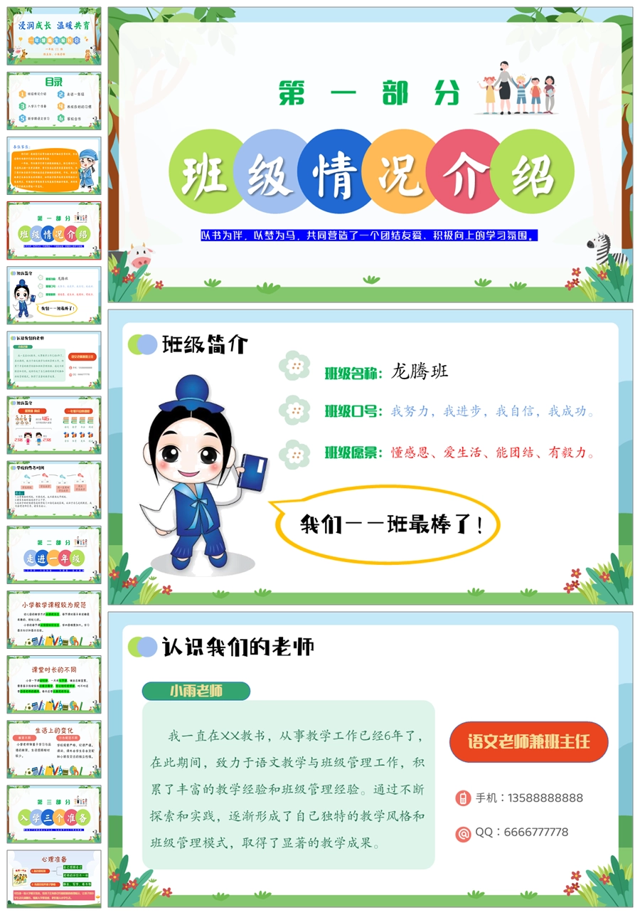 【5469】一年级新生家长会《浸润成长温暖共育》一年级新生入学家长会ppt课件+发言稿