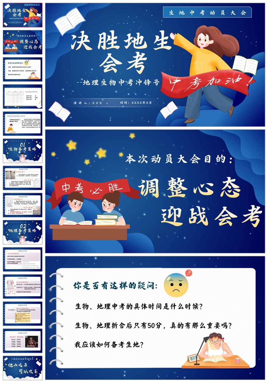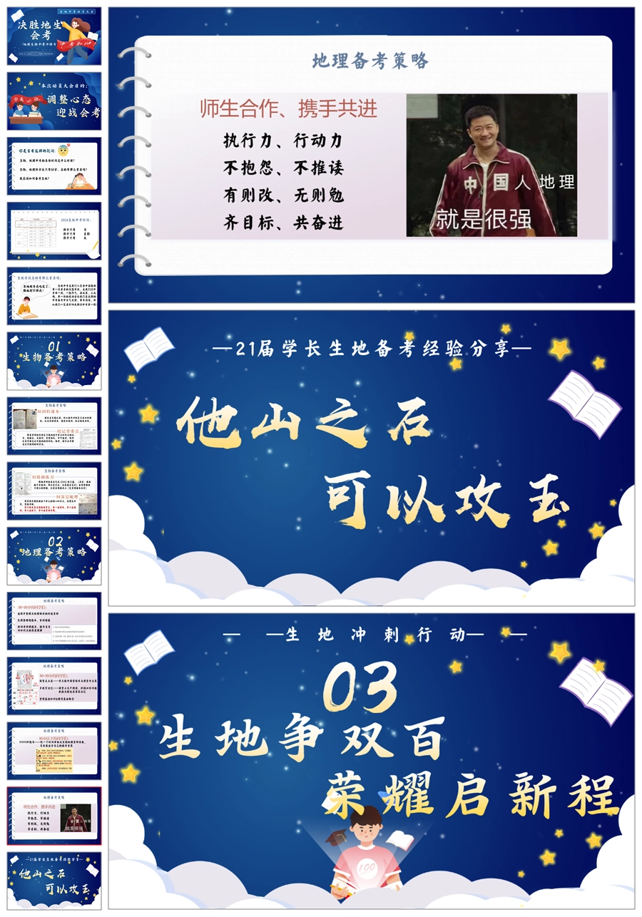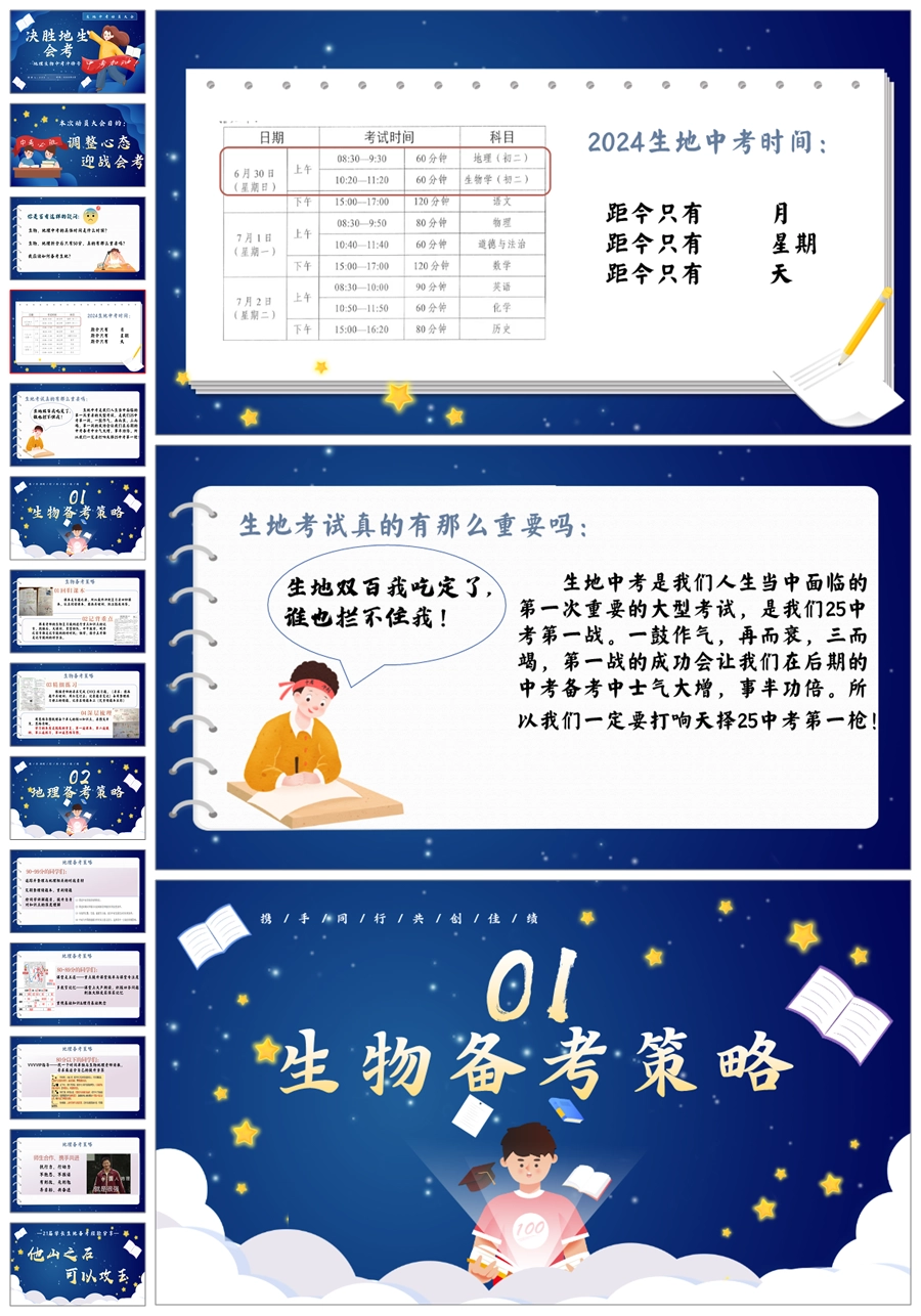 【5487】《地理生物中考冲锋号》决胜地生会考考试动员主题班会ppt课件+教案+目标卡