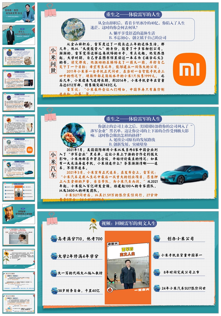 【5505】【励志梦想班会】《雷军的爽文人生》励志主题班会ppt课件+教案+视频