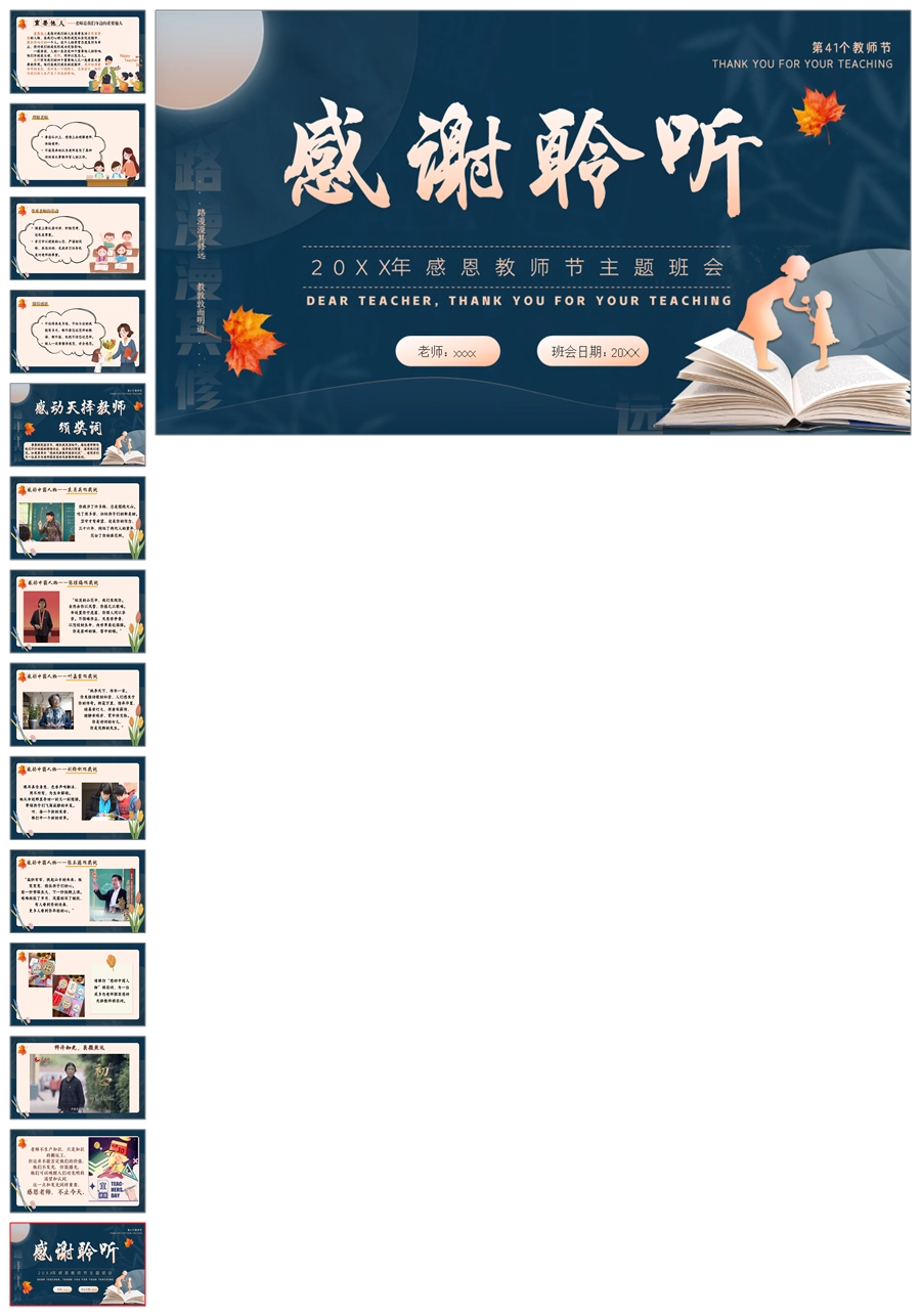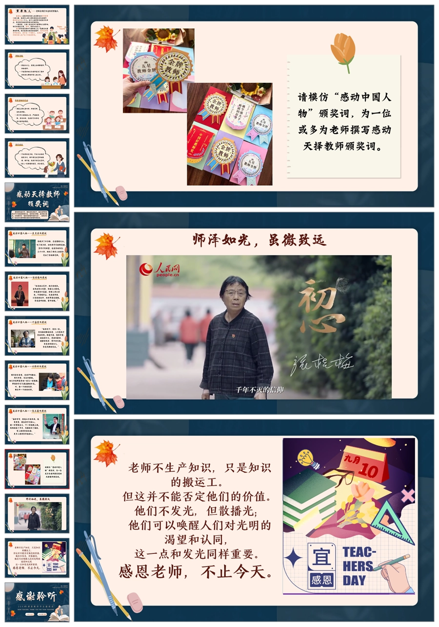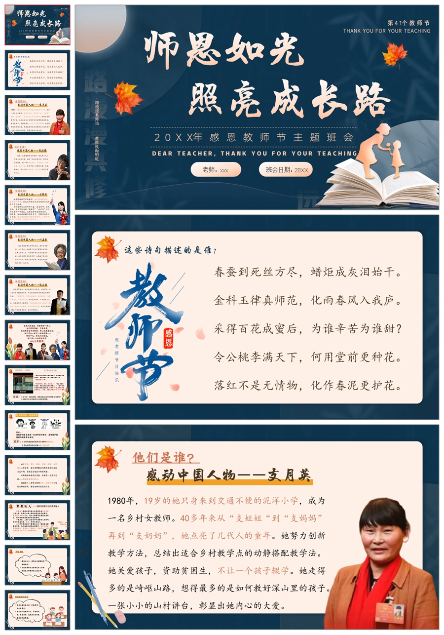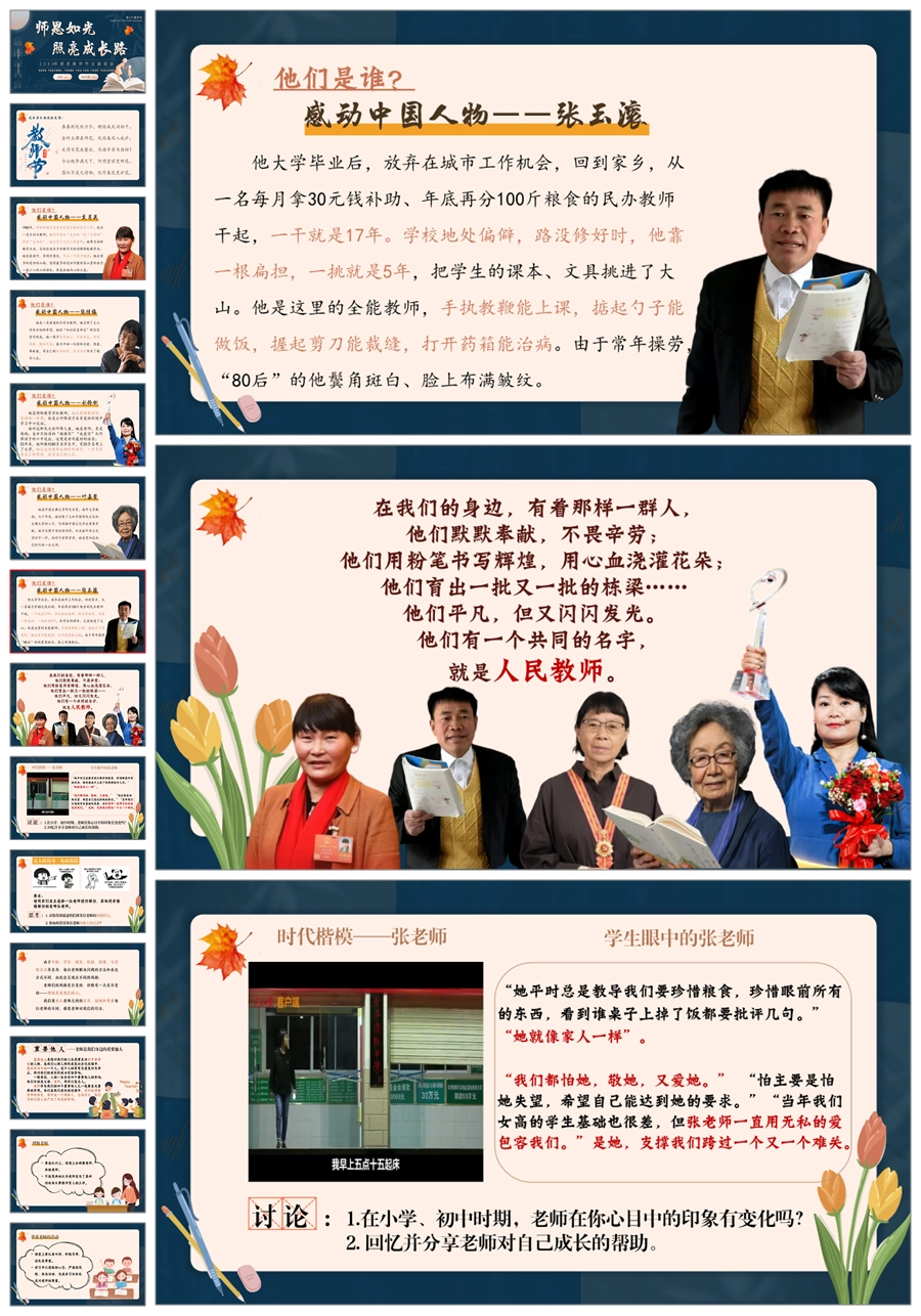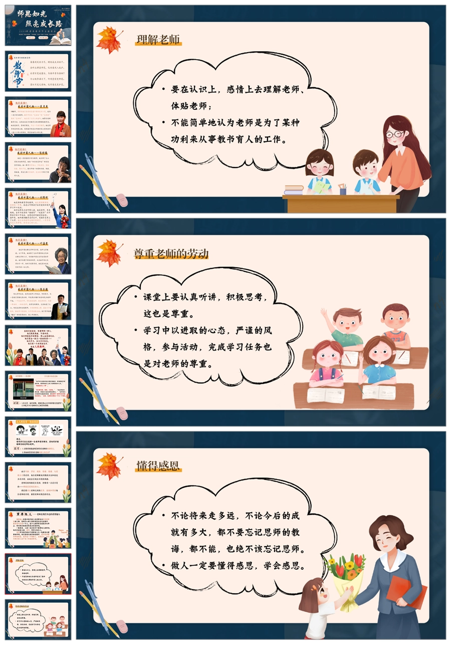 【5508】《师恩如光,照亮成长路》感恩教师节主题班会ppt课件+发言稿+视频